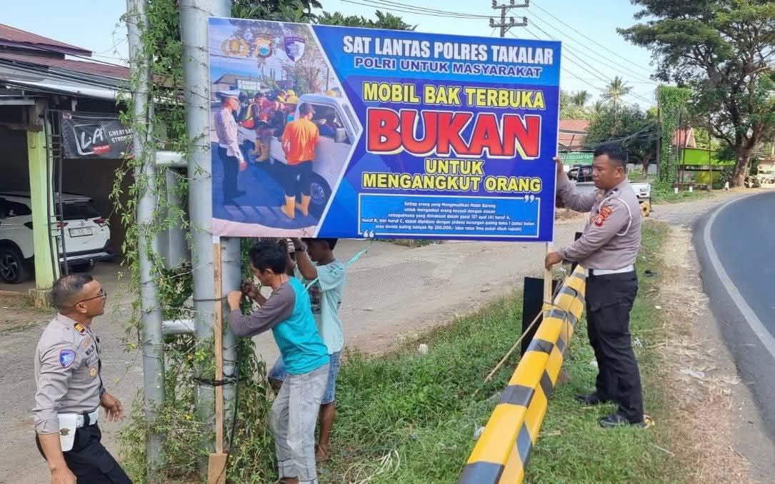 TAKALAR – Dalam upaya mengurangi angka kecelakaan lalu lintas, Satuan Lalu Lintas (Satlantas) Polres Takalar melaksanakan pemasangan spanduk himbauan Kepada Kendaraan Pickup Untuk Tidak Mengangkut Orang.