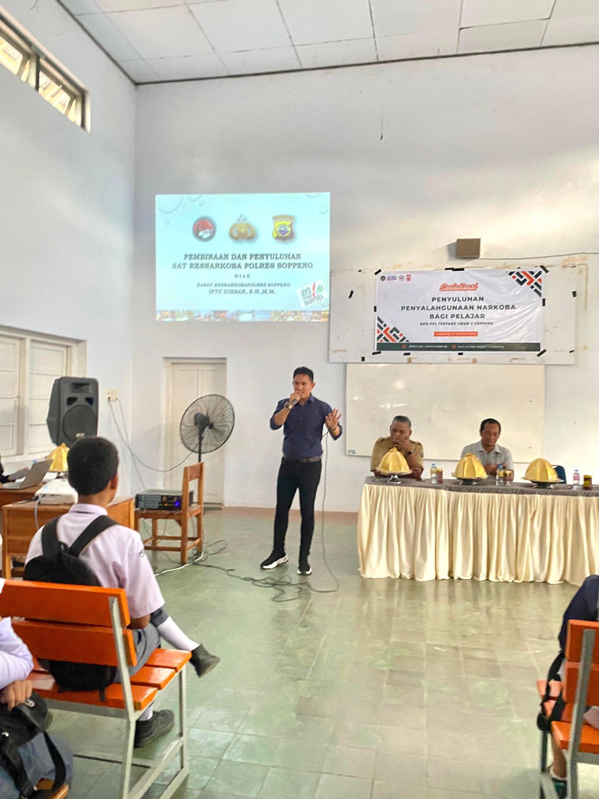 Kasat Resnarkoba Iptu Ichsan . mengatakan “Kegiatan ini merupakan Kegiatan penyuluhan Pencegahan dan memberikan edukasi Kepada Pelajar SMA yang ada di Kabupaten Soppeng agar tidak mencoba-coba untuk menggunakan Narkoba karena Pengguna dan Pengedar Narkoba sama-sama terjerat UU No 35 Tahun 2009.