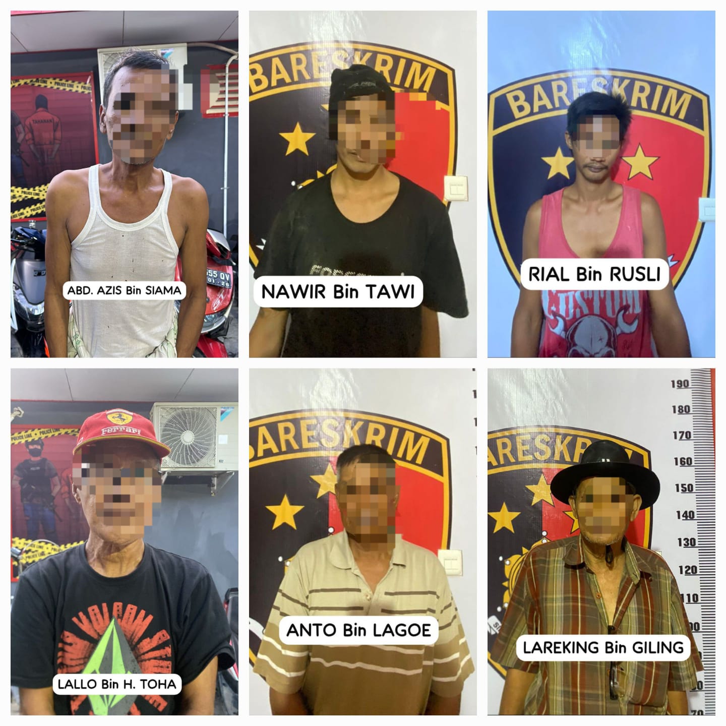Lanjut Kasat Reskrim, Adapun pelaku judi yang berhasil diamankan yaitu Abd Aziz (60) Alamat Jl. Laupe Kel. Kadidi, Lareking (60) alamat Panreng Kec. Baranti, Nawir (31) alamat Jl. Laupe Kel. Maccorawalie, Anto (58) alamat Kel. Kanie Kec. Panca Rijang, Lallo (63) alamat Jl. Angkatan 66 Kec. Pancarijang dan Rial Bin Rusli.