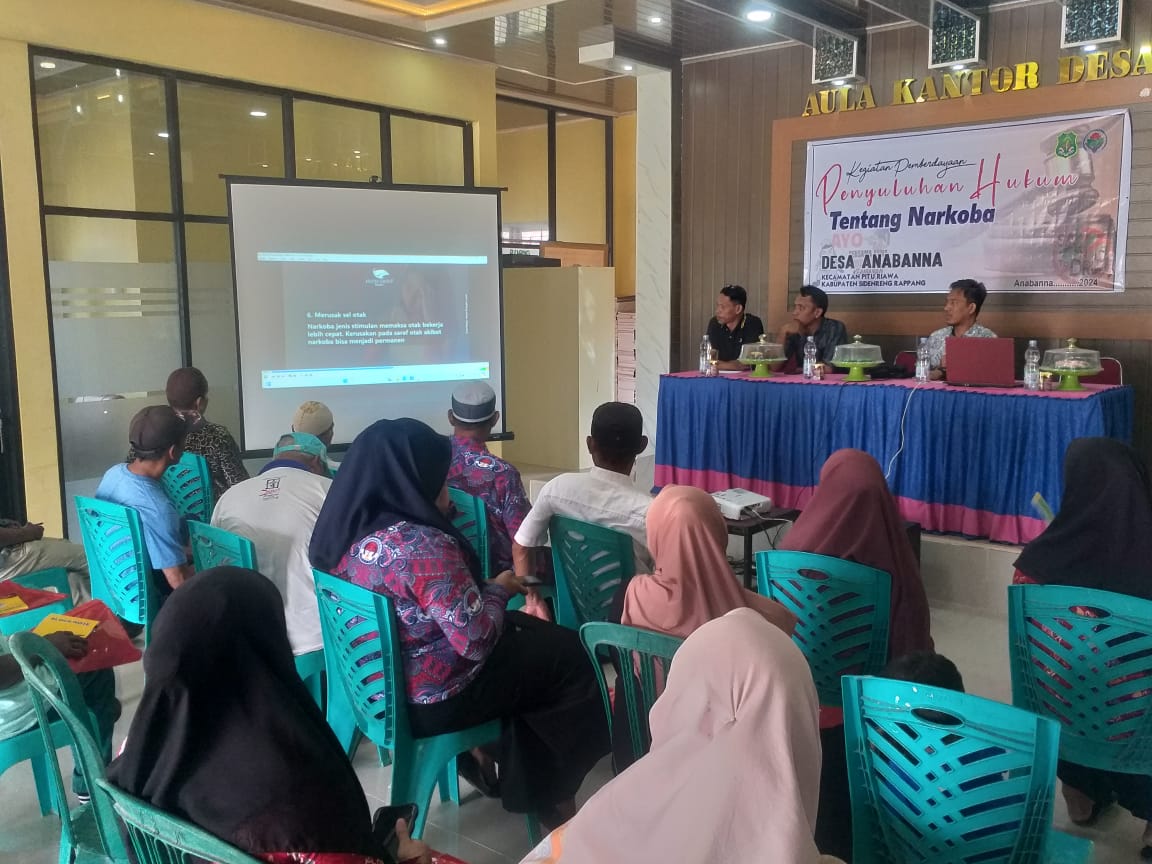 SIDRAP – Kaur Bin Ops (KBO) Satnarkoba Polres Sidrap IPDA Amdaryono Saputra, SH memberikan Penyuluhan Bahaya Narkoba kepada masyarakat di Aula Kantor Desa Anabanna, Kec. Pitu Riawa, Kab. Sidrap. Jum’at (20/07/2024).