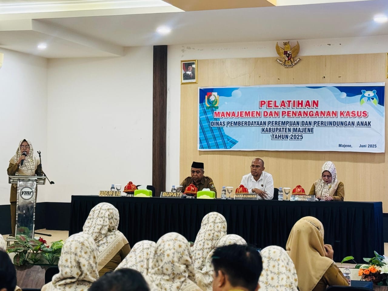 Kegiatan Pelatihan Manajemen dan Penanganan Kasus tahun 2025, yang dilangsungkan di Aula Wisma Yumari, Jl. M. Saleh Banjar, Kelurahan Labuang Utara, Kecamatan Banggae Timur, Kabupaten Majene, Senin (16/6/25).
