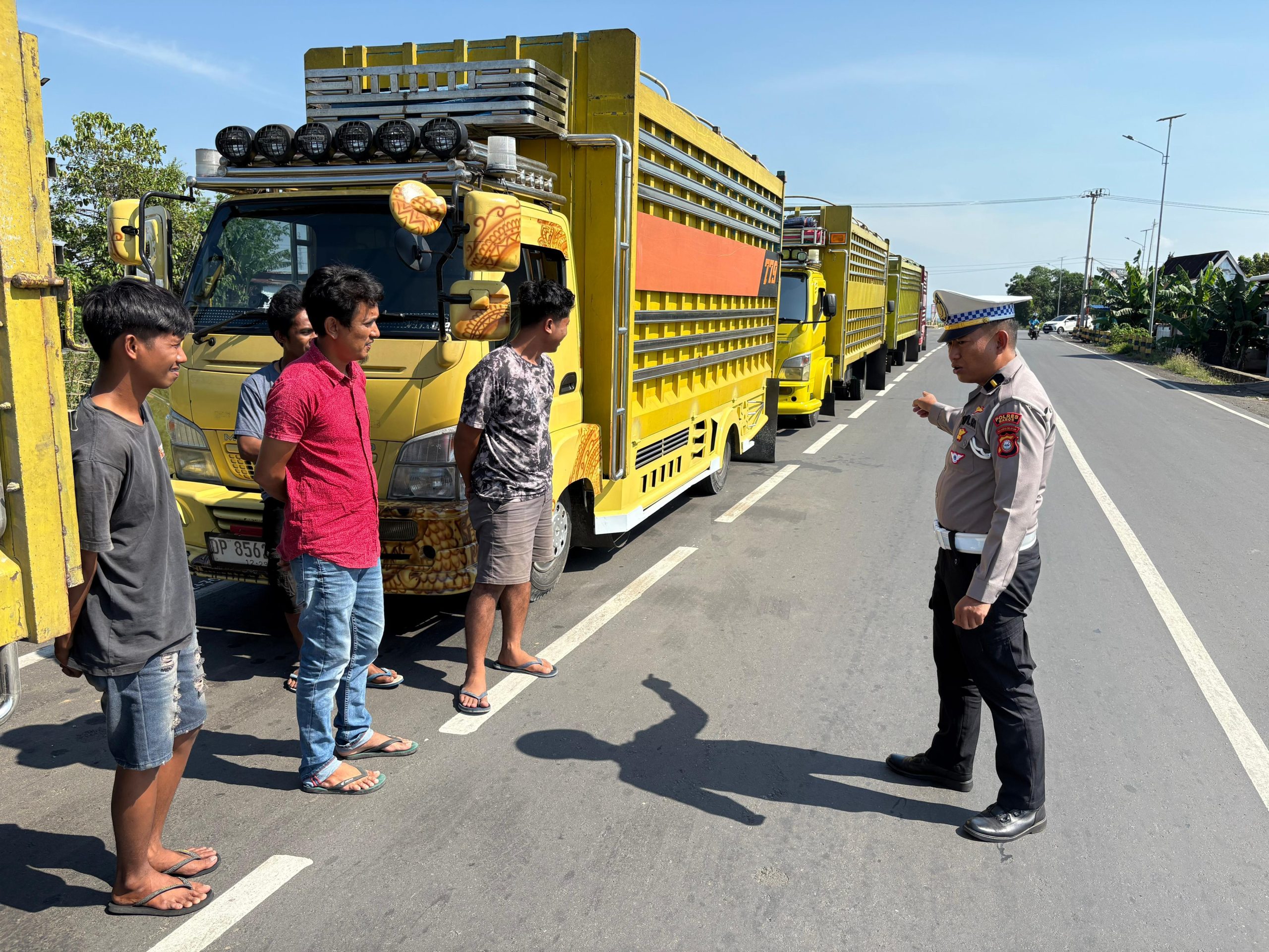 Maros – Satuan Lalu Lintas (Satlantas) Polres Maros melaksanakan kegiatan himbauan kepada para pengemudi kendaraan angkutan barang di Jalan Mamminasata, Kecamatan Turikale, Kabupaten Maros, Rabu (8/10) pagi.