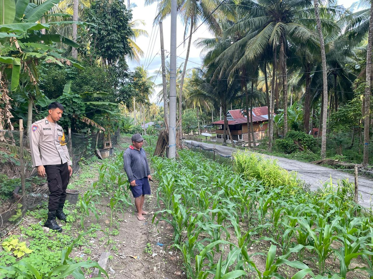 Dalam kegiatan tersebut, Brigpol Baktiar tidak hanya melakukan pemantauan, tetapi juga berdialog dengan para petani guna mengetahui kondisi tanaman serta kendala yang dihadapi di lapangan. Kehadiran Bhabinkamtibmas ini menjadi bentuk nyata dukungan Polri dalam mendorong sektor pertanian sebagai pilar utama ketahanan pangan masyarakat.