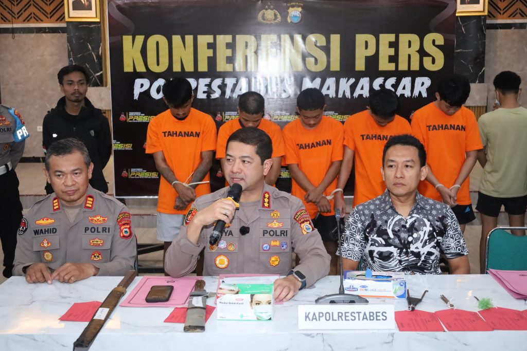 “Tersangka tersebut terdiri dari 10 orang yang diantaranya 5 berstatus dewasa dan 5 berstatus dibawah umur”, ucap Kapolrestabes Makassar.