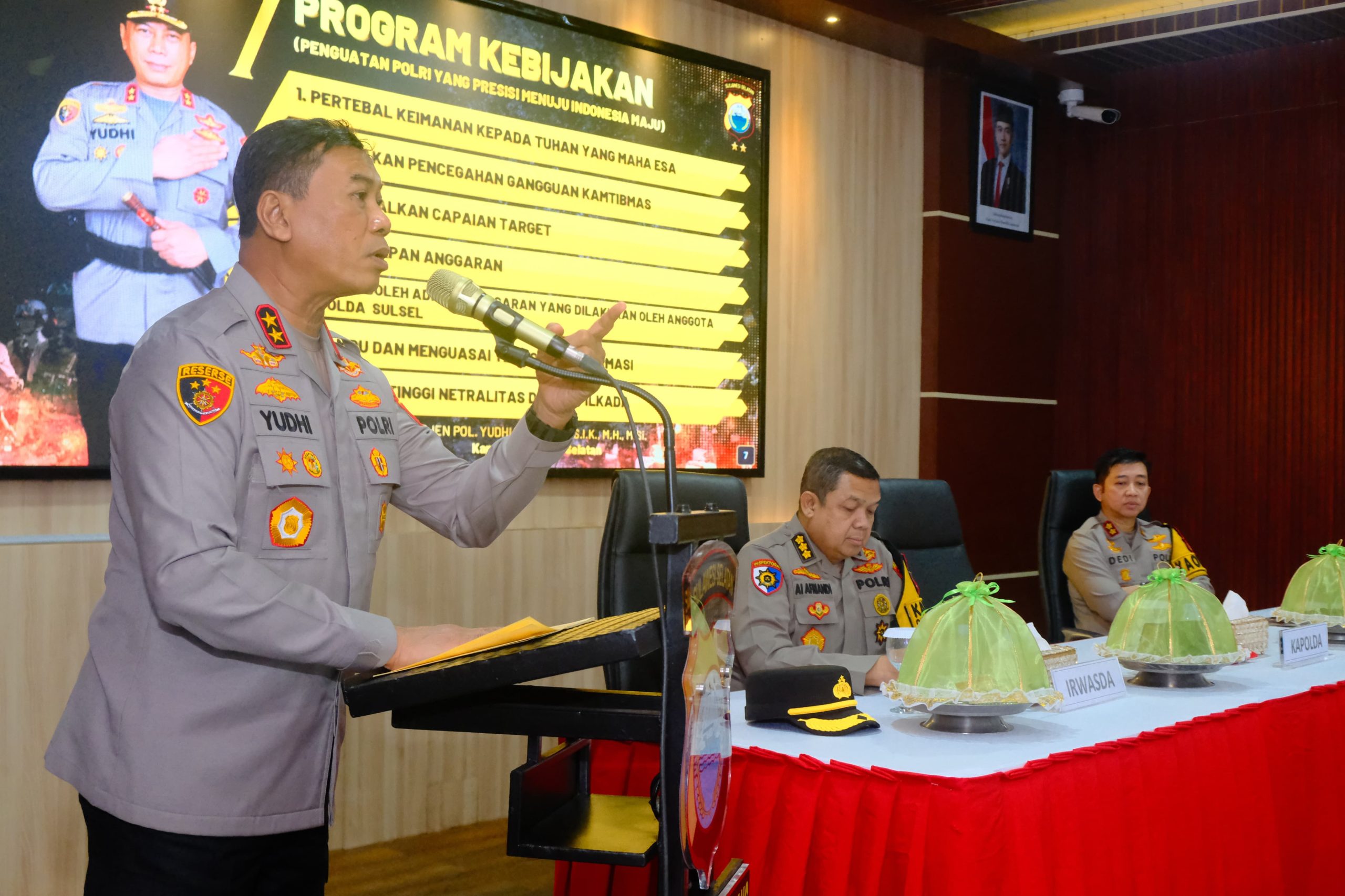 Kapolda menyoroti visi menuju Indonesia Emas 2045 yang memerlukan kesamaan cita-cita, yang dirangkum dalam “Asta Cita,” serta pelaksanaan 17 program prioritas dan 8 program hasil terbaik cepat. Ia juga menyampaikan arahan Presiden RI, Prabowo Subianto, terkait prioritas swasembada pangan, energi, dan hilirisasi, termasuk program makan bergizi gratis.