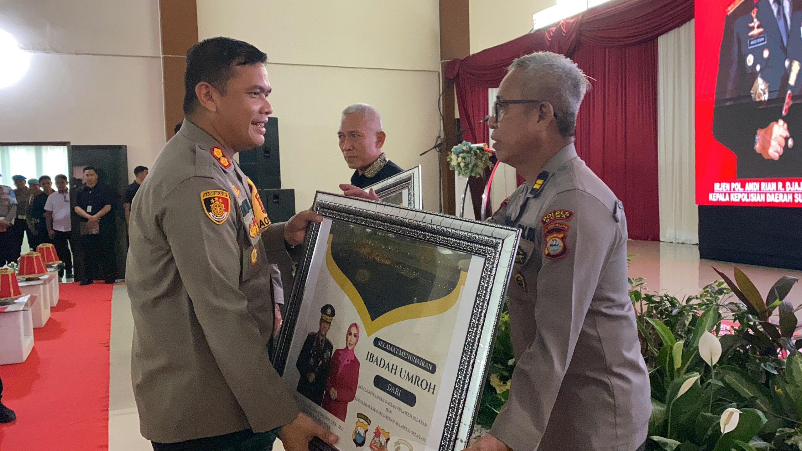 Sebagai bagian dari apresiasi, Kapolda Sulsel memberikan Hadiah umroh gratis kepada dua personel Polres Gowa.