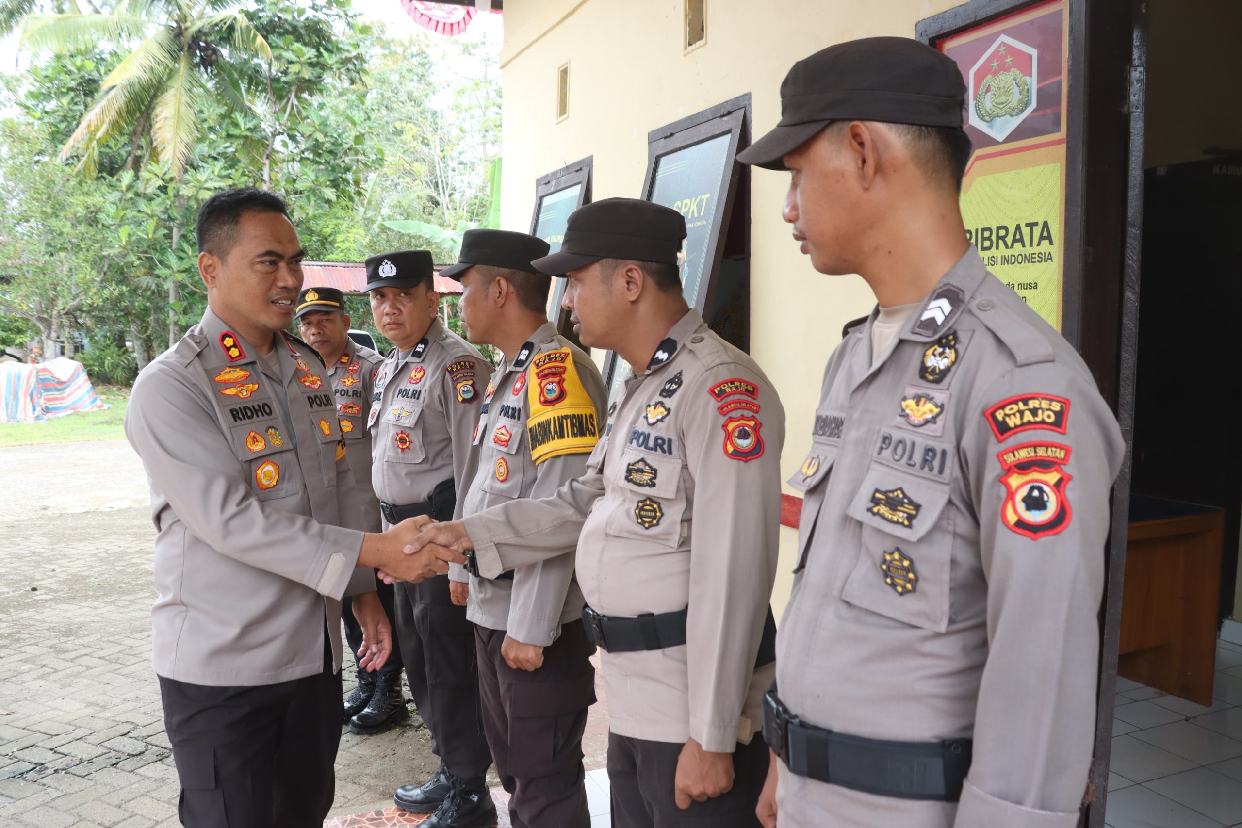 WAJO _ Kepala Kepolisian Resor (Kapolres) Wajo AKBP Muhammad Rosid Ridho, S.I.K bersama pejabat utama (PJU) Polres Wajo. Senin 19 Agustus 2024, melaksanakan kunjungan kerja (Kunker) ke Polsek Gilireng beserta PJU Polres Wajo disambut langsung oleh Kapolsek Gilireng IPTU. Reski Goga. SH bersama seluruh Personel Polsek Gilireng. dan dilanjutkan dengan pemeriksaan sekitar mako polsek dan pengecekan ruangan dengan didampingi oleh seluruh PJU polres Wajo.