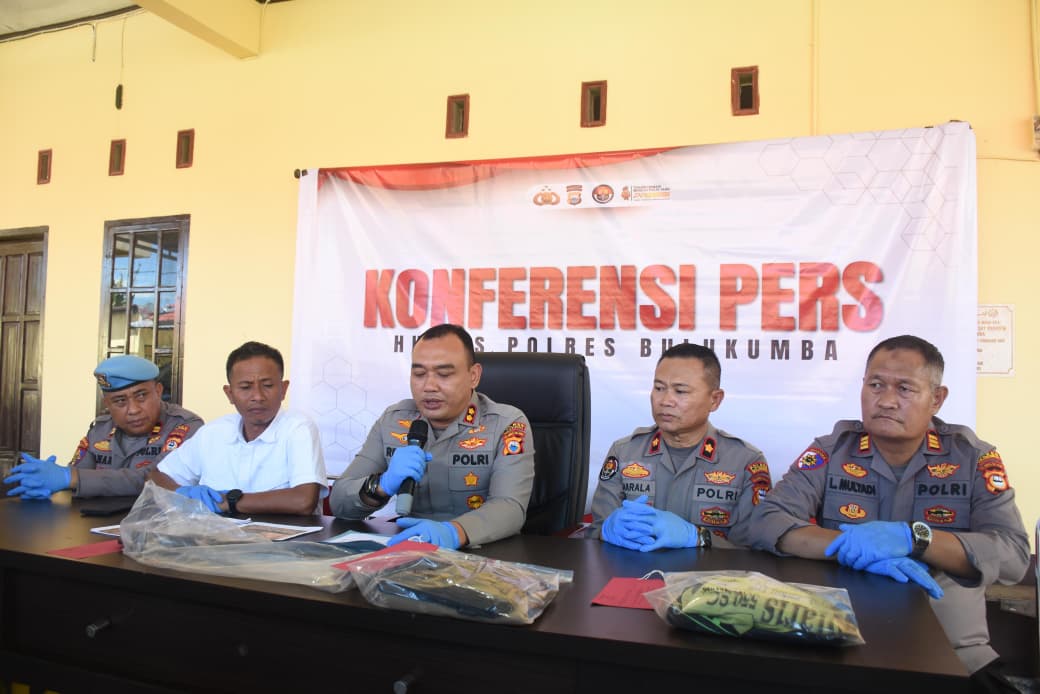 Hal tersebut disampaikan dalam konferensi pers yang digelar pada Rabu (1/4/2026) di Mapolres Bulukumba yang dipimpin langsung oleh Kapolres Bulukumba AKBP Restu Wijayanto, S.I.K., didampingi Kasat Reskrim IPTU Muhammad Ali, S.Sos., Kasi Humas KOMPOL H. Marala, Kasiwas AKP Lis Mulyadi, serta Kasi Propam IPTU Andi Panangrangi, dan dihadiri sejumlah awak media.