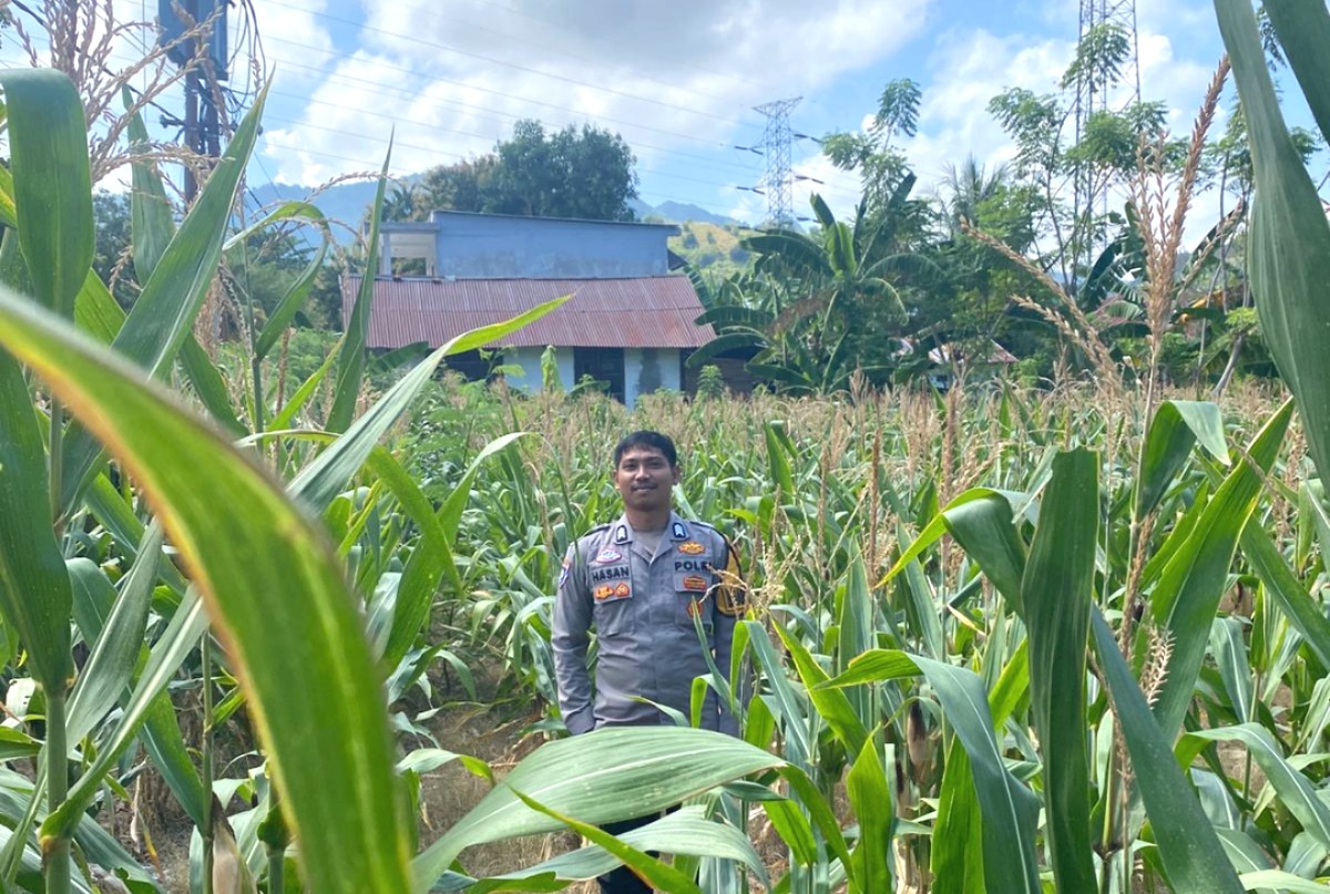 Dalam upaya mendukung program ketahanan pangan nasional, peran aktif jajaran kepolisian terus ditunjukkan melalui keterlibatan langsung di tengah masyarakat. Seperti yang dilakukan Bhabinkamtibmas Polsek Sendana, Brigpol Hasan Masran, S.H., yang melaksanakan pemantauan tanaman jagung milik Kelompok Tani Batu Meana di Desa Tallambalao, Kecamatan Tammeroddo Sendana, Senin (27/4/2026).