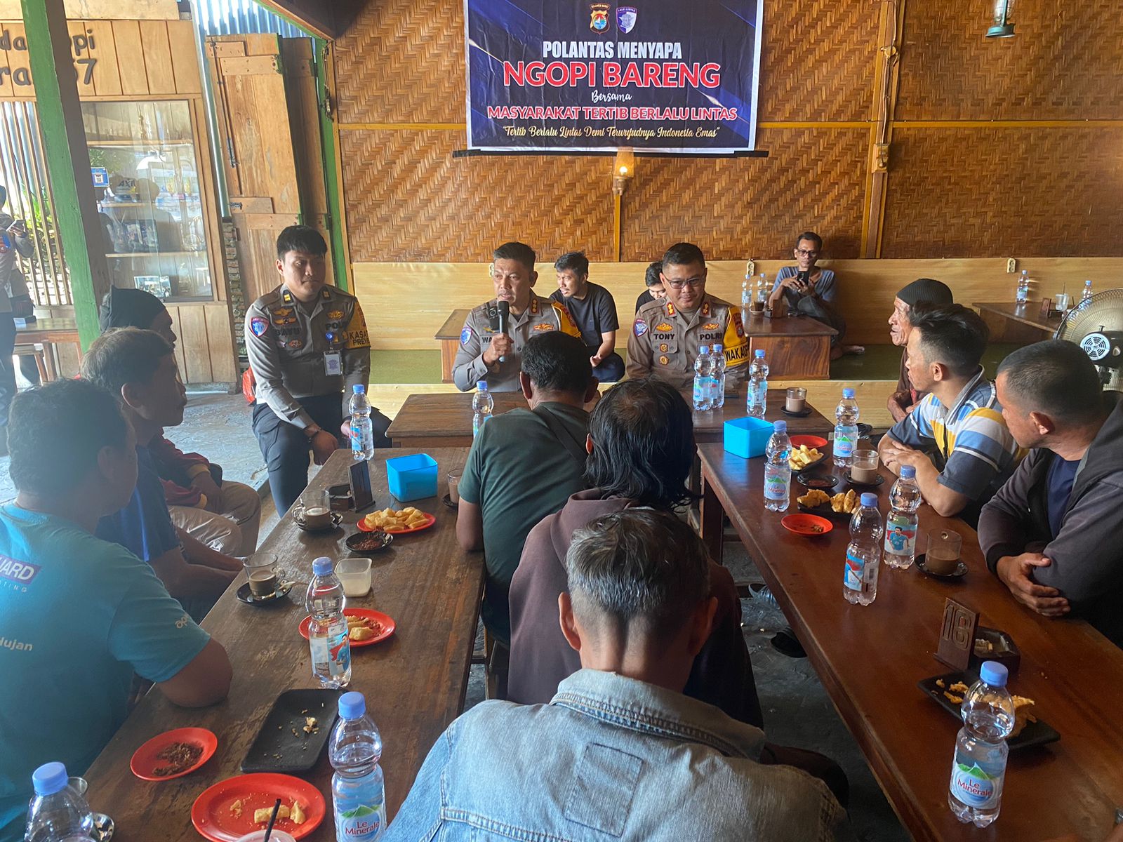 Kegiatan Ngopi bareng ini berlangsung penuh keakraban, diwarnai obrolan santai namun sarat makna tentang pentingnya tertib berlalu lintas.