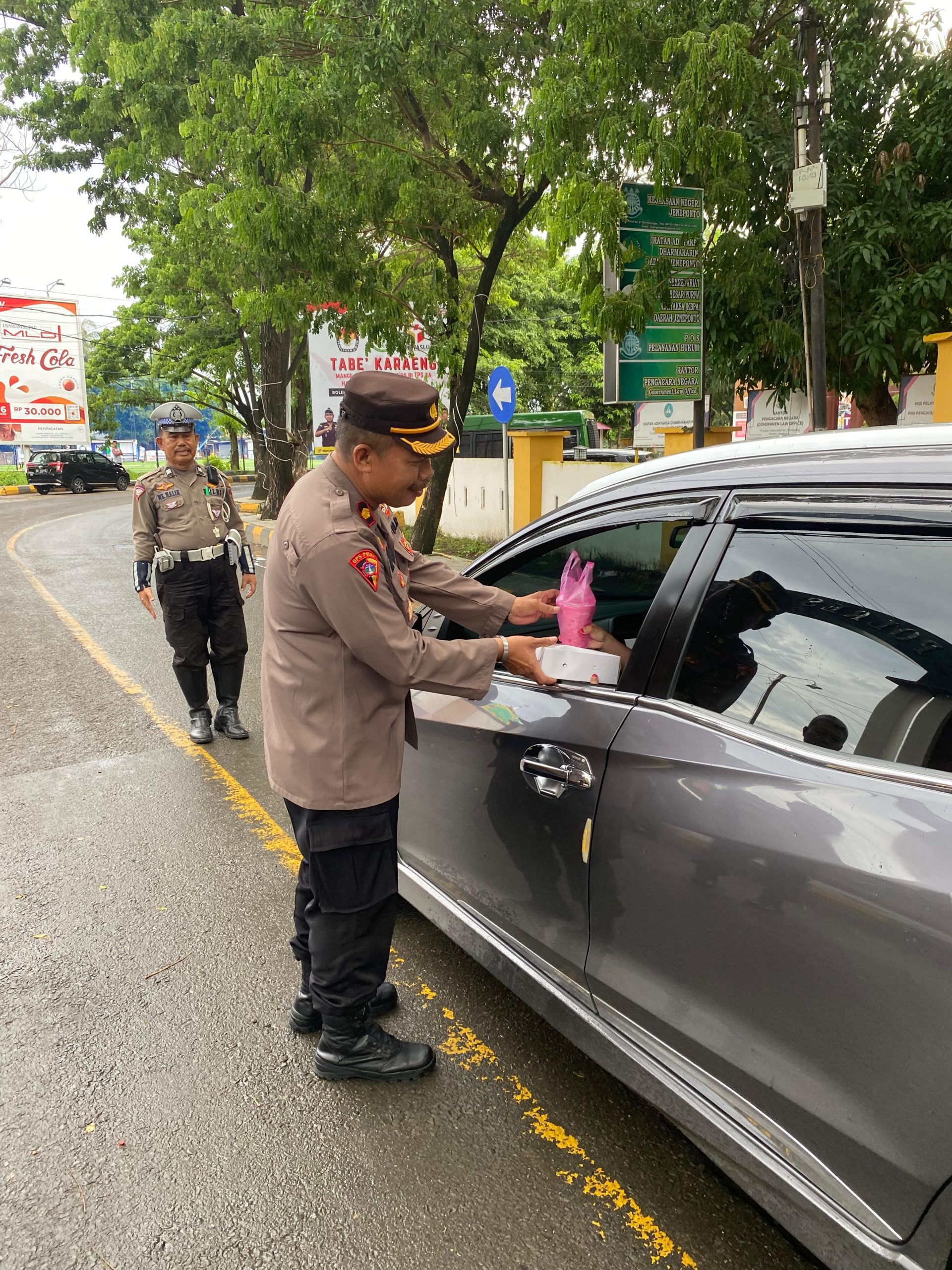 Dalam kesempatan tersebut turut hadir yakni Wakapolres Jeneponto Kompol Muh. Idris dan para PJU, pembagian makanan berupa takjil gratis ini merupakan salah satu sarana menebar kebaikan dan mencari pahala di bulan ramadhan.
