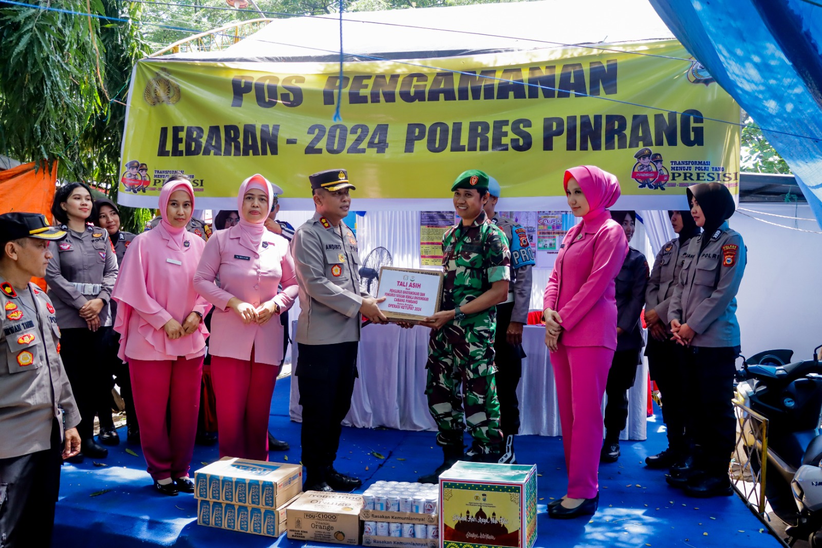 Selain itu, Kapolres Pinrang dan Ketua Bhayangkari Cabang Pinrang juga memberikan bingkisan makanan dan minuman kepada personil yang bertugas agar lebih semangat dalam melaksanakan tugas.