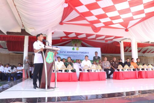 SIDRAP — Kapolres Sidrap AKBP Fantry Taherong, didampingi para Pejabat Utama (PJU) Polres Sidrap menghadiri Rapat Koordinasi (Rakor) Pangan II dalam rangka penerapan program Indeks Pertanaman 300 (IP-300) di Kabupaten Sidrap, Rabu (16/4/2025).
