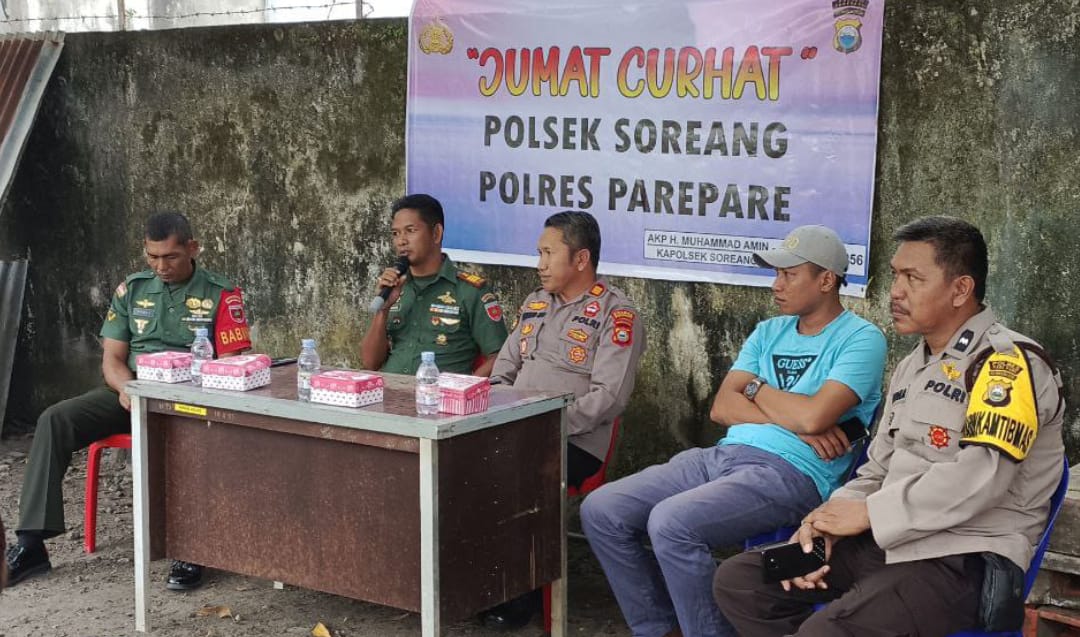 Parepare — Kapolsek Soreang Polres Parepare AKP. H. Muh. Amin, menggandeng Danramil 1405 – 02 / Soreang, Kapt. Czi. Zainuddin, S.E, dalam kegiatan Jumat Curhat yang dilaksanakan di area gudang PT. Pusri ( Pupuk Sriwijaya), yang terletak di Jl. H.A.M. Arsyad, Kel. Watang Soreang, Kec. Soreang Kota Parepare. Jumat (2/2/2024).