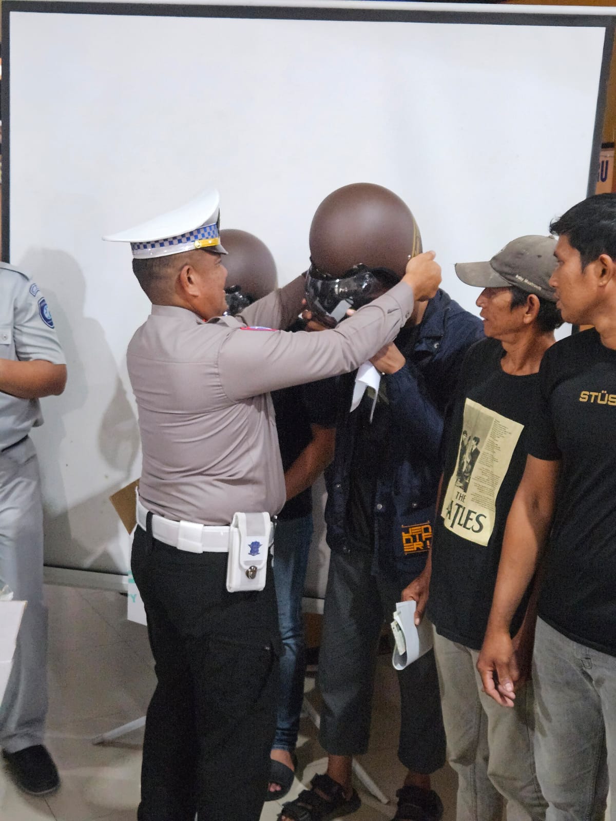 “Dan tentunya pembagian helm ini diharapkan masyarakat bisa konsisten semakin patuh terhadap aturan berlalu lintas,” tutupnya.
