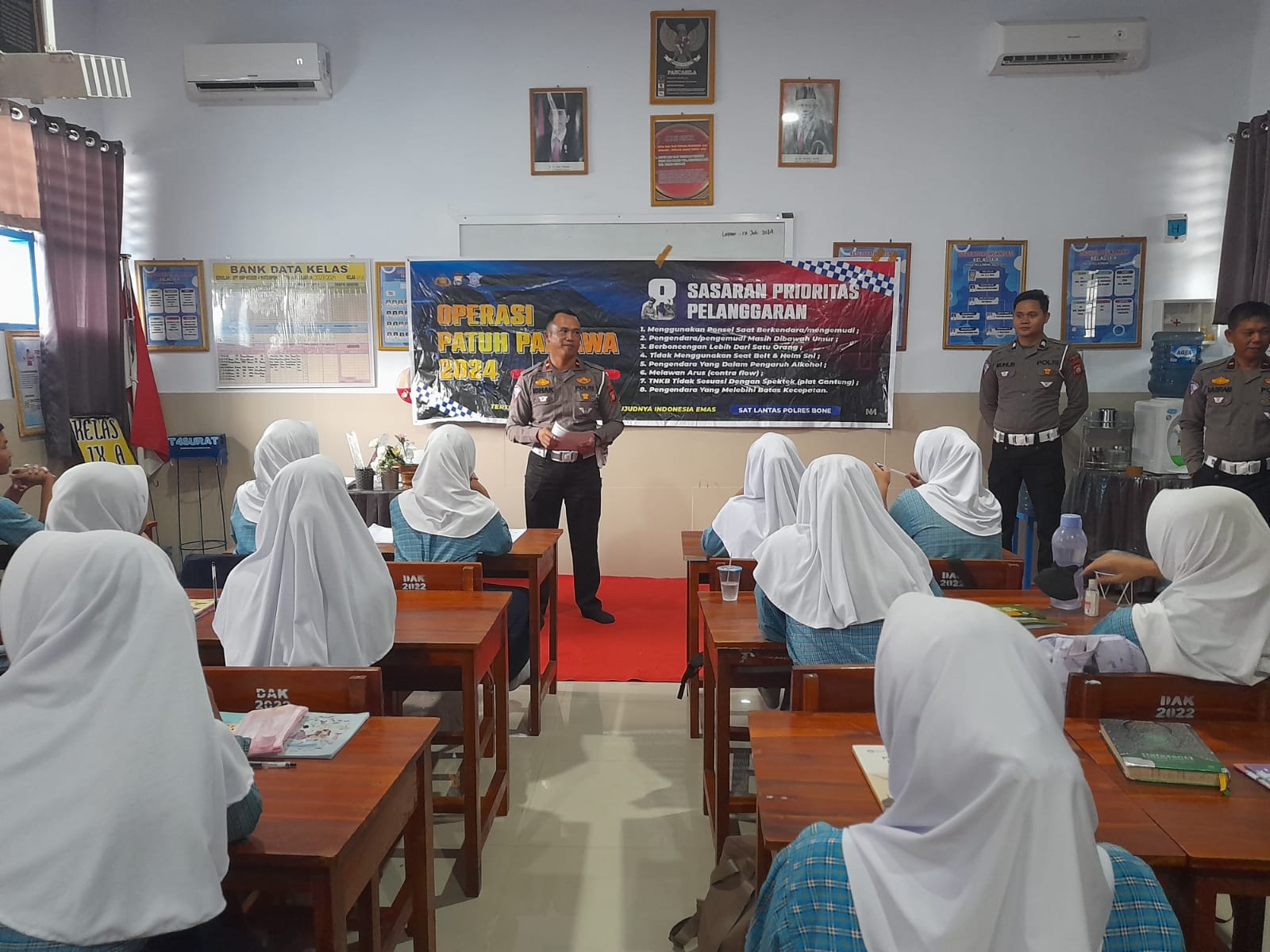 Dan memberikan edukasi, menjelaskan kepada pelajar jenis-jenis pelanggaran yang menjadi perioritas pelanggaran Operasi Patuh 2024.