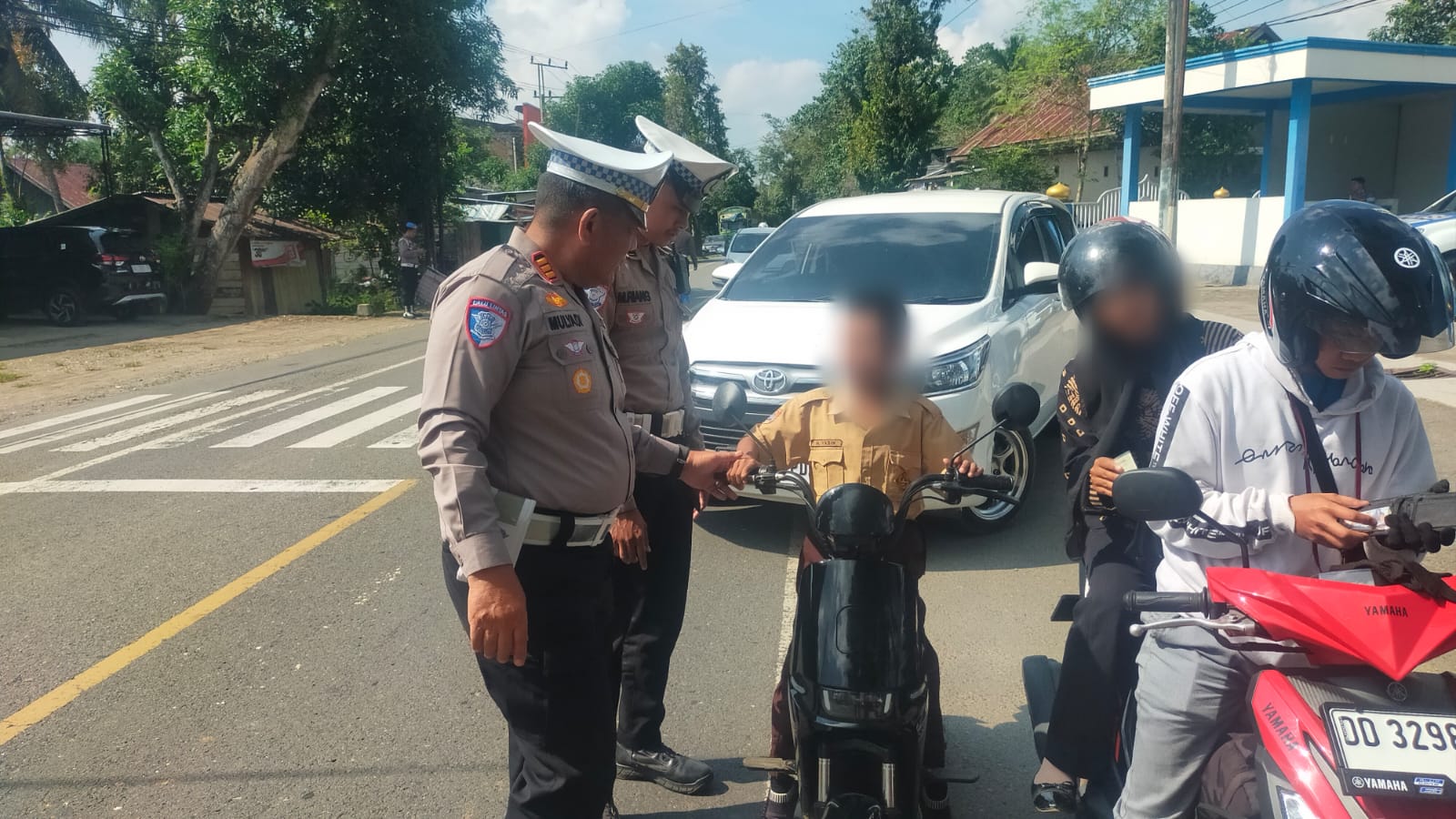Kasat Lantas Polres Bone AKP H Musmulyadi S.PDi melakukan peneguran secara humanis terhadap pengendara sepeda listrik yang masih di bawah umur, saat memimpin Ops Patuh Pallawa 2025 hari kelima di Jalan MT Haryono, Palakka, Kabupaten Bone.