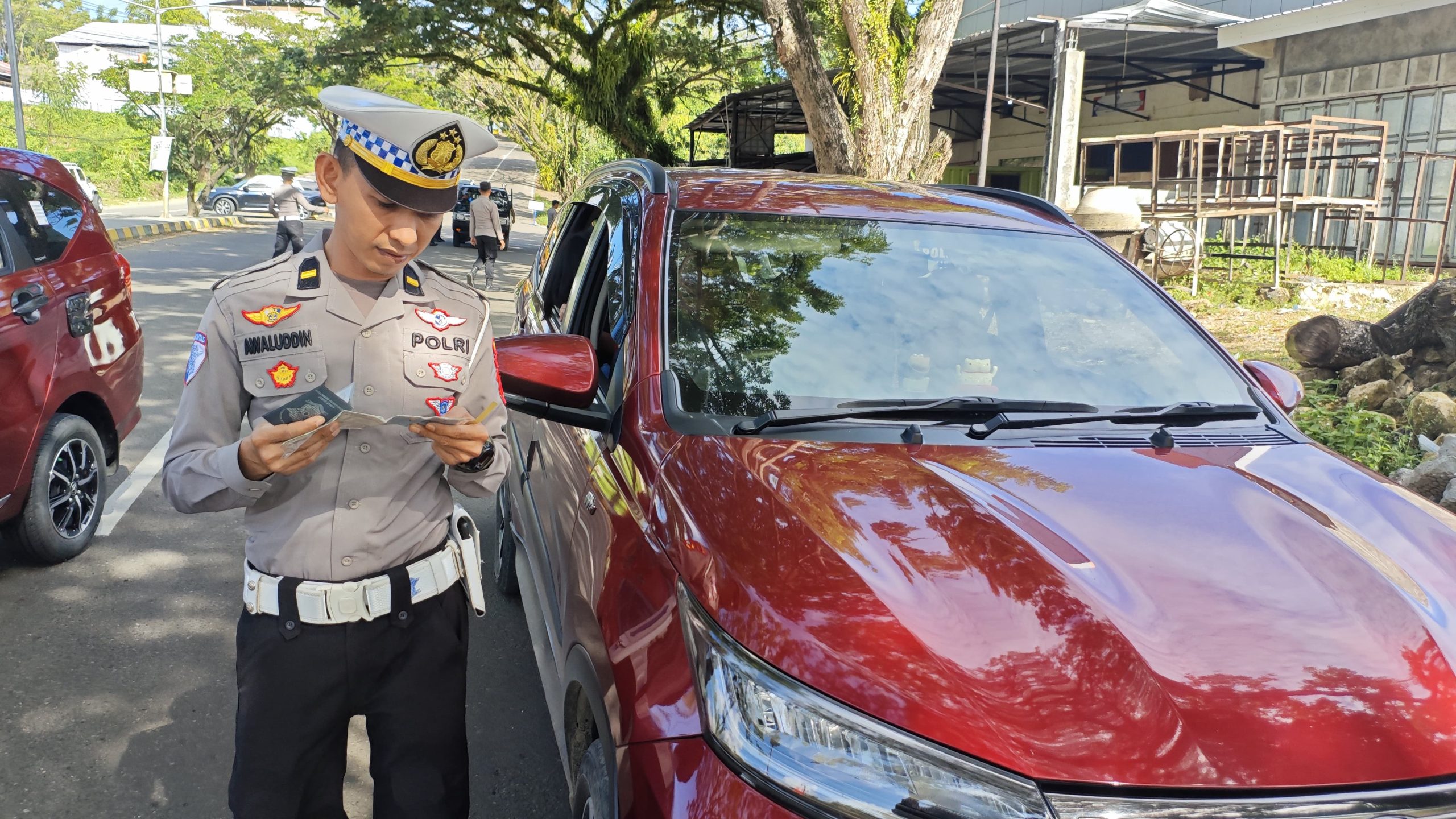 Setelah memastikan keselamatan pengendara, petugas kemudian memeriksa kelengkapan surat-surat kendaraan, SIM dan STNK. Bagi pengendara yang kedapatan melanggar, seperti tidak memiliki SIM dan STNK, atau tidak melengkapi kendaraan dengan spion, plat nomor yang sesuai, dan helm, langsung diberikan sanksi tilang. Namun, proses penindakan tetap dilakukan dengan sopan dan profesional.
