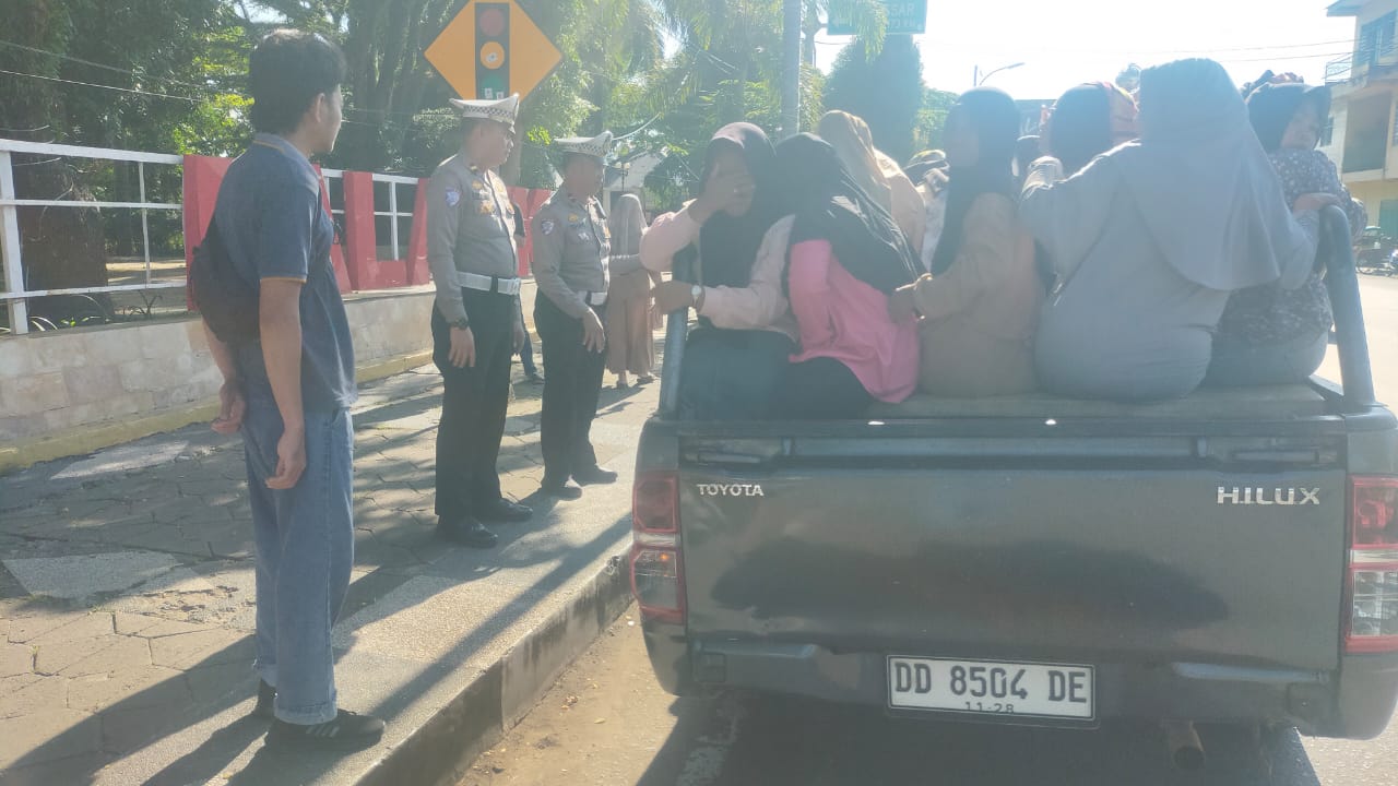 Sesuai undang-undang yang berlaku, setiap mobil barang atau bak terbuka mengangkut orang tanpa alasan, diancam kurungan satu bulan atau denda Rp 250 Ribu.