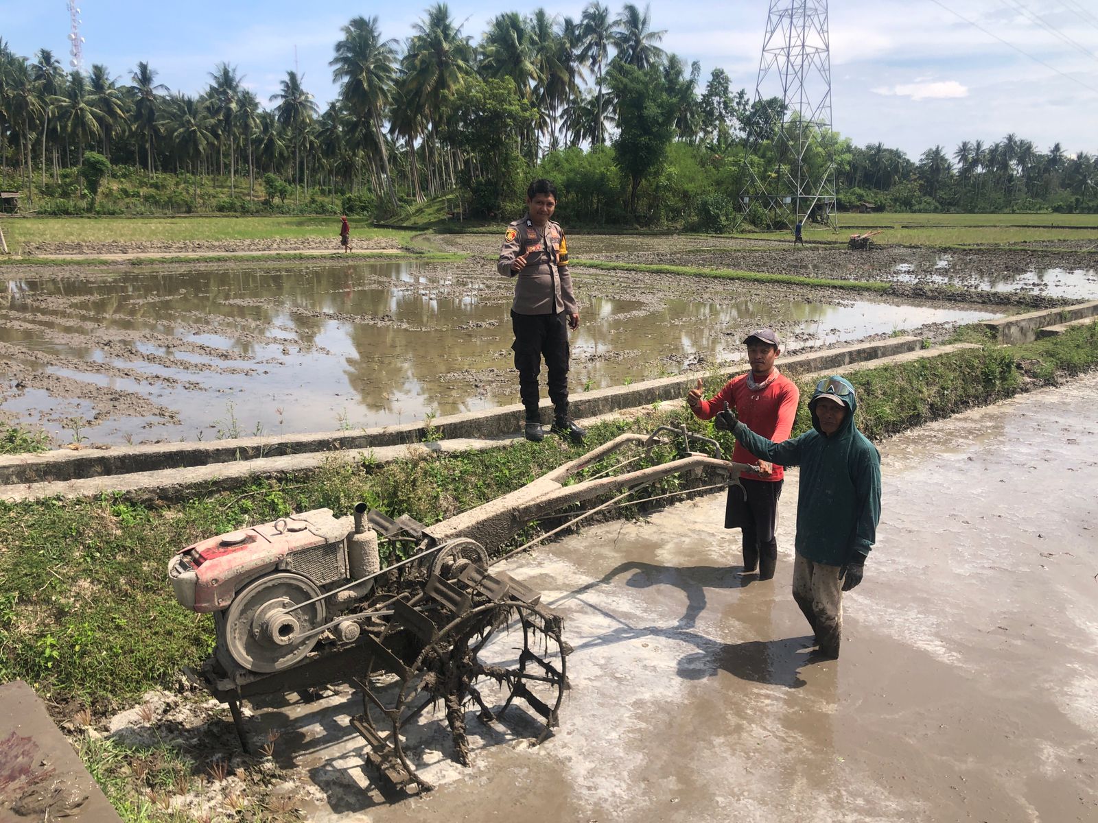 Seperti yang dilakukan Bhabinkamtibmas Polsek Sendana, Brigpol Isnain Shafar, yang turun langsung memantau proses pembajakan sawah milik Kelompok Tani Gunung Ombo di Dusun Tapalasang, Desa Tubo Selatan, Kecamatan Tubo Sendana, Kabupaten Majene, Kamis (23/4/2026).