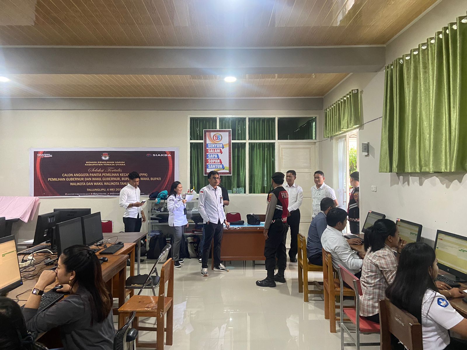 TORUT-Polres Toraja Utara Polda Sulsel menggelar kegiatan pengamanan tes tertulis badan Adhoc Panitia Pemilihan Kecamatan (PPK) penyelenggaraan Pilkada Tahun 2024 yang berlangsung di SMK Negeri 1 Rantepao Jln. Tagari Tallunglipu Kabupaten Toraja Utara.