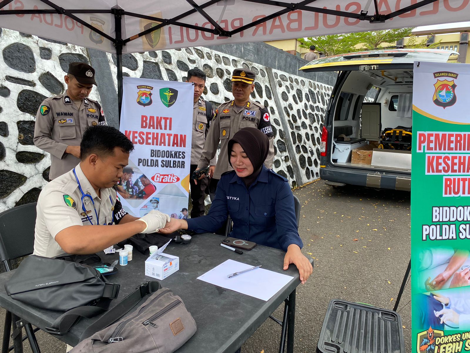 Jadi setiap pagi tim Biddokkes ini standby di sudut lapangan apel, seusai pelaksanaan apel para personel yang ingin memeriksakan kesehatannya akan langsung diberikan pelayanan.
