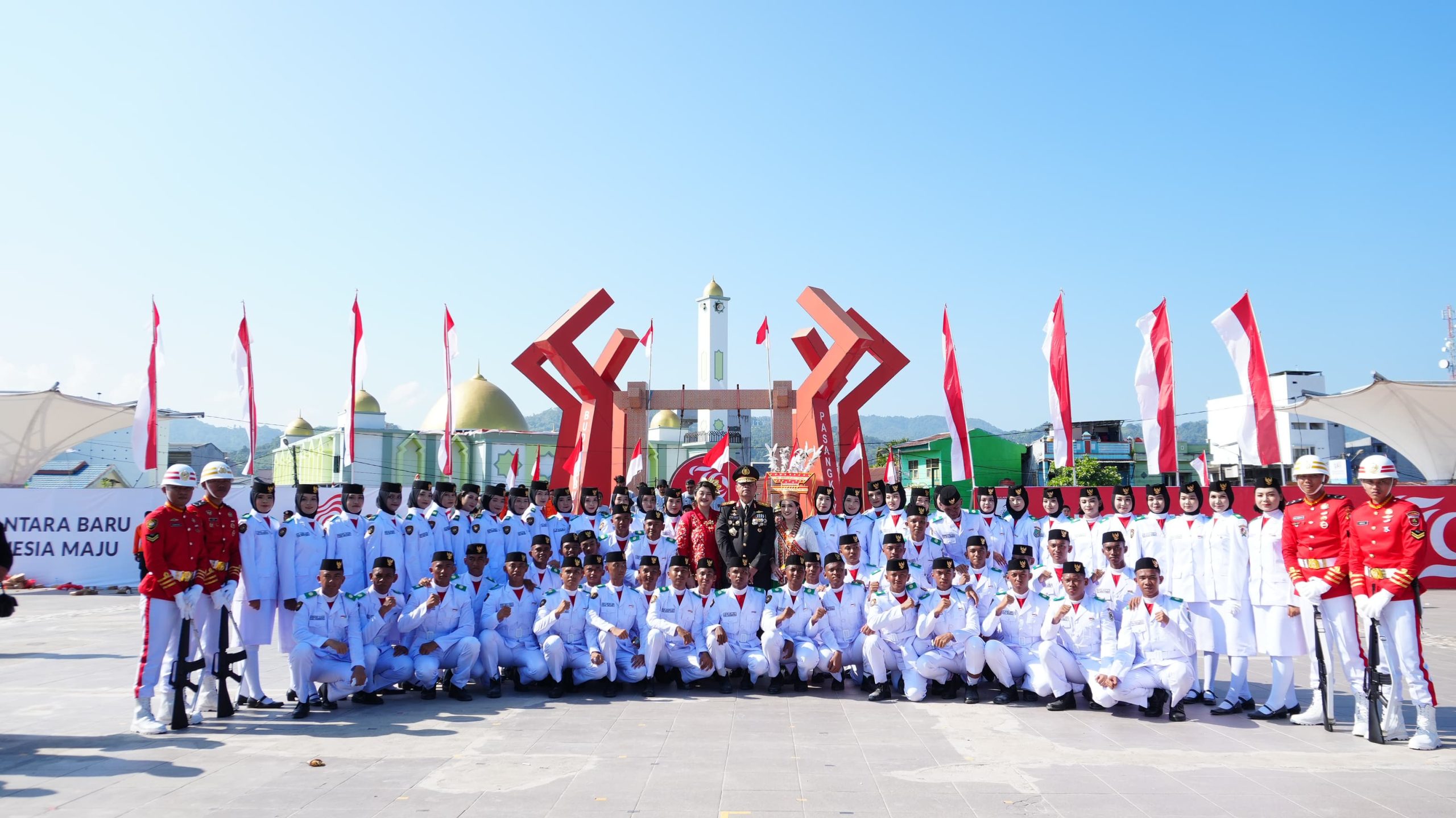 Pasukan Paskibraka Sulbar Berpose Bangga Bersama Kapolda Usai Kibarkan Bendera Pusaka