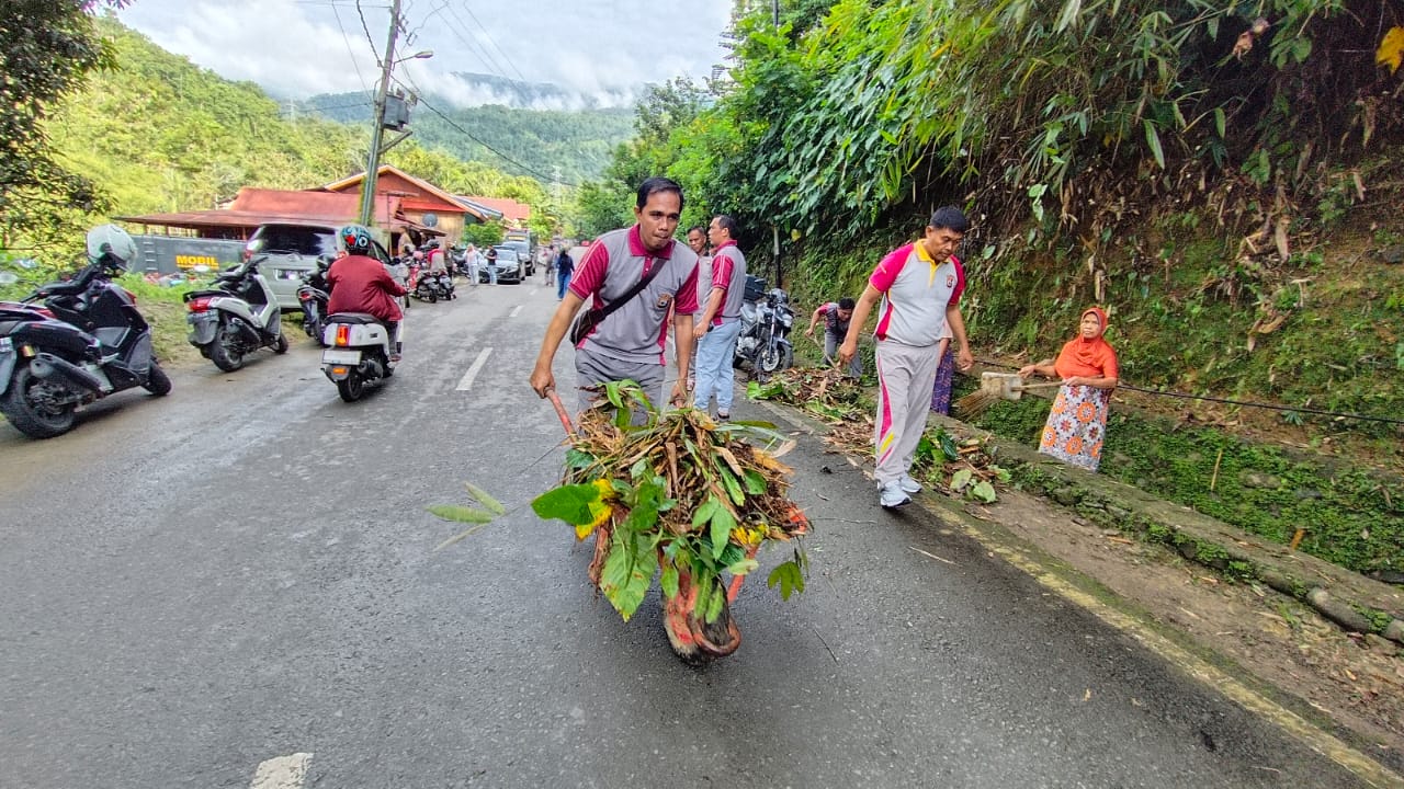 Mereka bahu membahu, membersihkan drainase hingga pinggir jalan yang sudah ditumbuhi rumput liar.