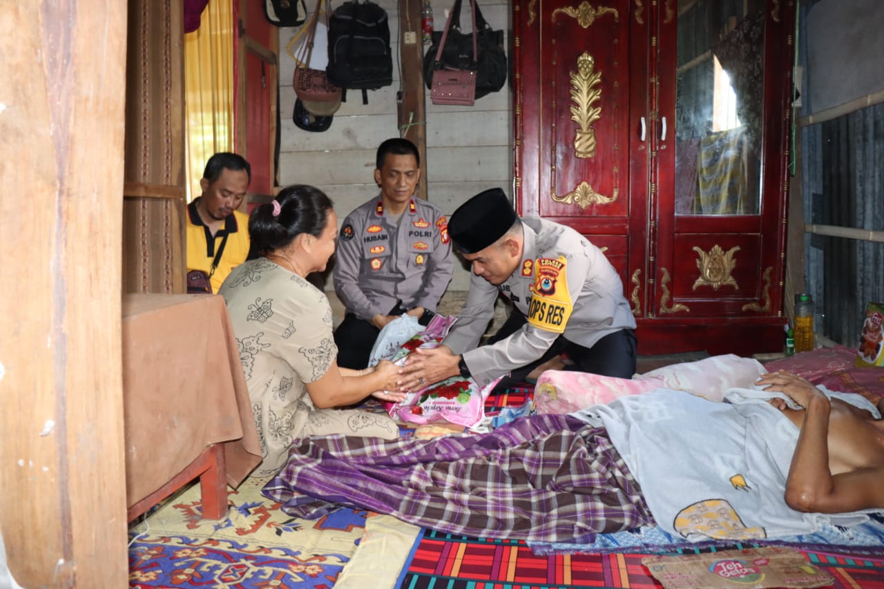 Kapolres Soppeng di dampingi oleh Kasihumas IPTU H.Husain S.Sos SH.,MH. Dan Bhabinkamtibmas Kelurahan Lemba Aiptu Budiaman mendatangi warga kurang mampu beralamat di Lappacabbu Kelurahan Lemba Kecamatan Lalabata