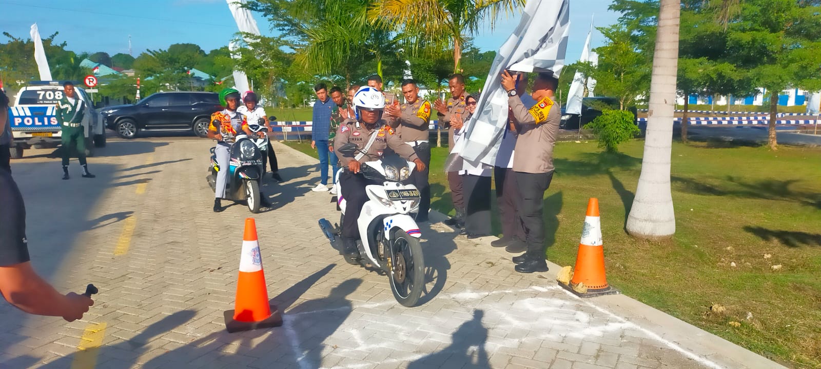 BONE- Personel Satuan Lalu Lintas (Satlantas) Polres Bone go to campus dengan melakukan pelatihan Safety Riding kepada mahasiswa dan dosen di Kampus Politeknik Kelautan dan Perikanan Bone, Selasa (27/8/2024)