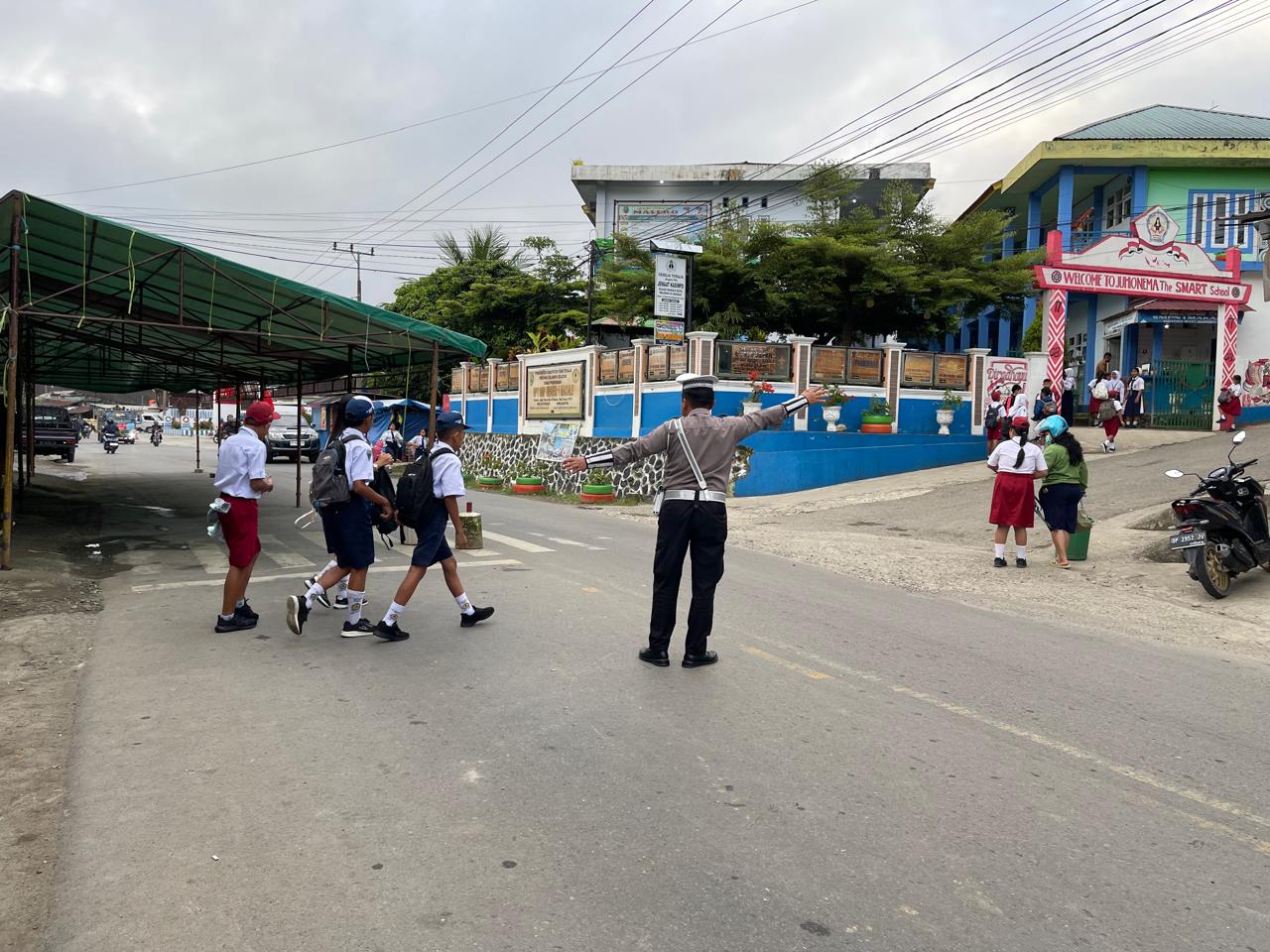 Kegiatan ini menyasar aktivitas masyarakat dan pelajar yang mulai ramai beraktivitas di pagi hari. Personel Sat Lantas terlihat aktif mengatur arus lalu lintas serta sigap membantu para pelajar menyeberang jalan di titik-titik rawan guna menciptakan situasi yang aman, tertib, dan nyaman bagi seluruh pengguna jalan.