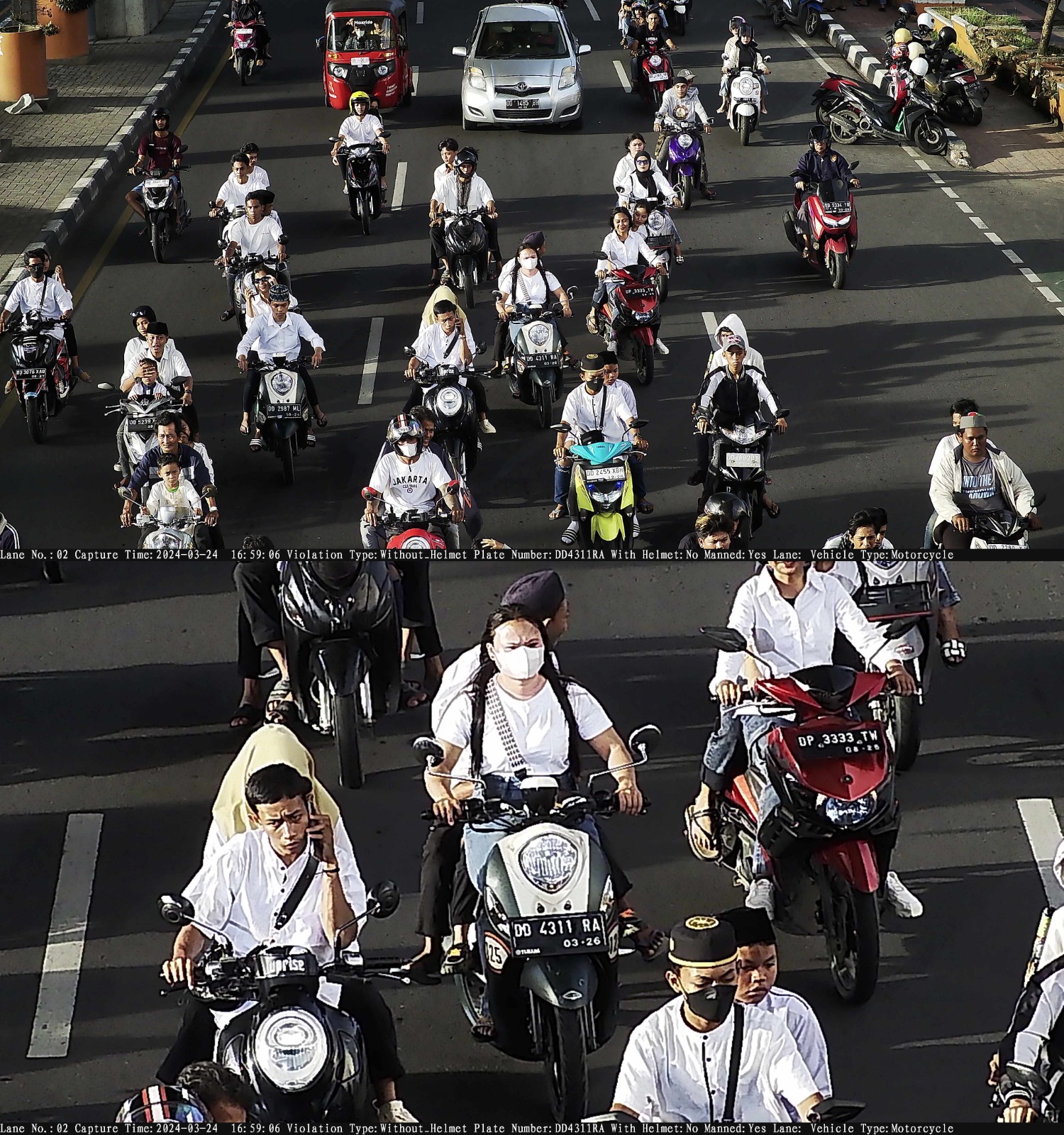 “Dari rekaman pelanggaran itu kemudian kami lihat sebagian besar peserta konvoi berkedok bagi takjil ini berboncengan 3, sepeda motornya tidak dilengkapi spion dan plat nomor bahkan menggunakan knalpot brong” Jelas Kombes Pol Dr. I Made Agus Prasatya, S.I.K.