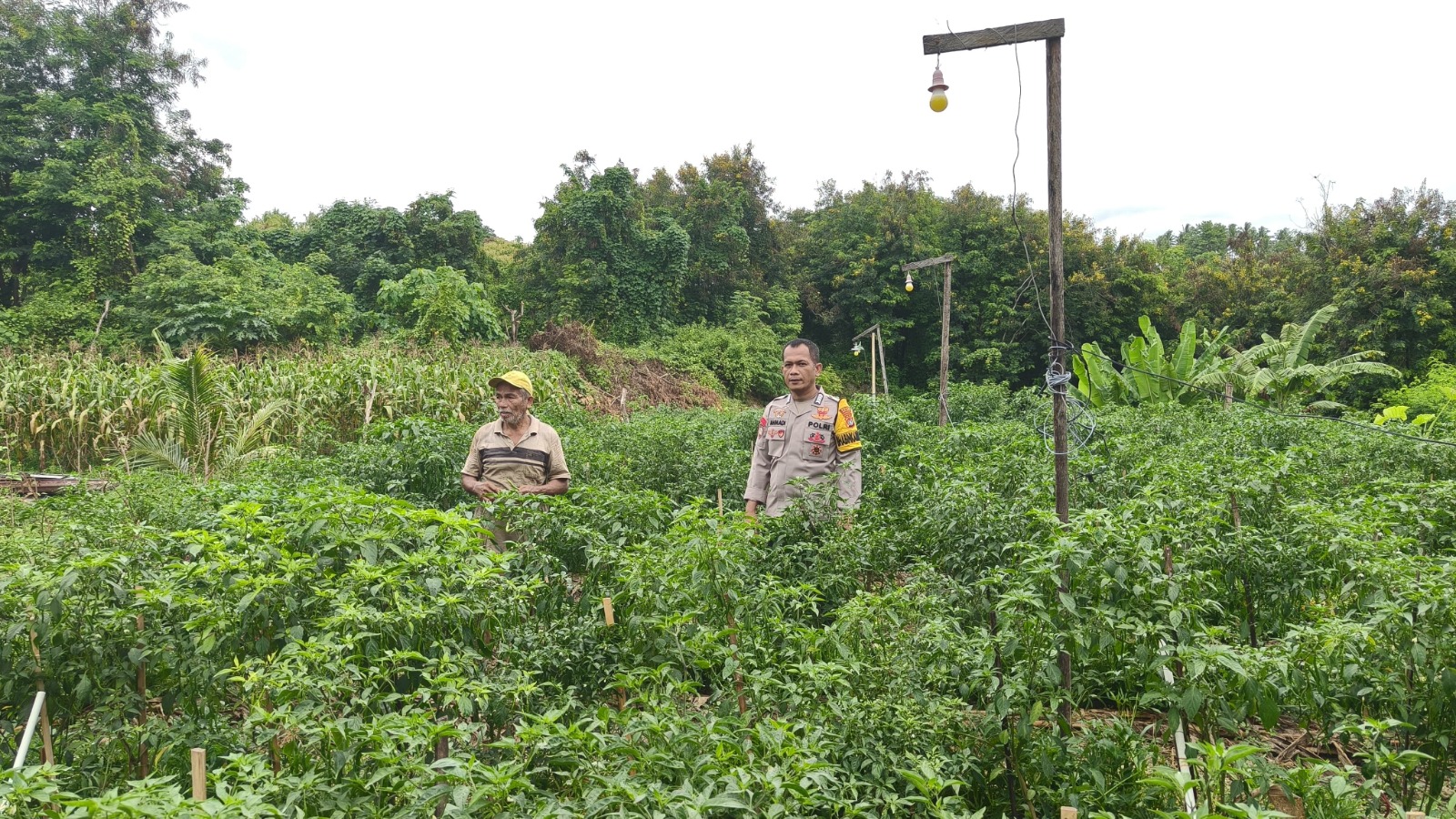 Dalam kunjungannya, Bripka Ahmadi berdialog dengan pemilik lahan untuk mengetahui kondisi tanaman cabai, mulai dari usia tanam, perawatan, hingga kendala yang dihadapi petani di lapangan. Ia juga memberikan motivasi agar warga tetap semangat mengelola lahannya secara maksimal, karena pertanian cabai memiliki nilai ekonomis yang tinggi serta berperan penting dalam menjaga stabilitas pangan dan harga di pasaran.