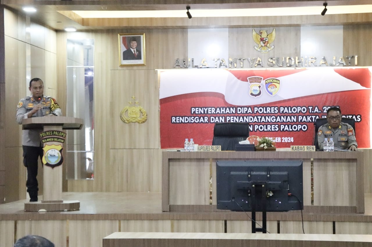 Palopo – Polres Palopo melaksanakan kegiatan penyerahan Daftar Isian Pelaksanaan Anggaran (DIPA) dan penandatanganan Pakta Integritas untuk Tahun Anggaran 2025.