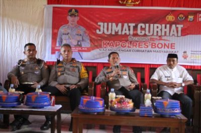 Pada Jumat Curhat ini, Kapolres Bone didampingi oleh Waka Polres Bone Kompol Antonius Tuleta, Pejabat Utama Polres Bone, Kapolsek Tellu Limpoe IPDA Sirajuddin, Kapolsek Lamuru AKP Nurhayati dan Kapolsek Bengo IPDA Irah.