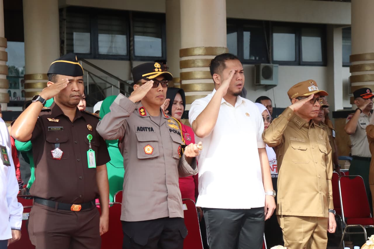 Peringatan Hari Olahraga Nasional ke-42, Kapolres Soppeng Hadiri Upacara di Halaman Kantor Bupati