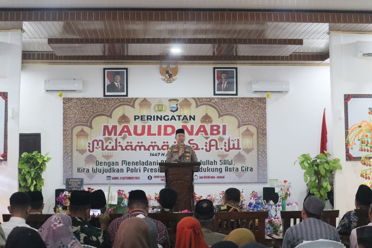Tana Toraja — Sebagai wujud syukur dan momentum untuk meneladani akhlak Rasulullah SAW, Polres Tana Toraja menggelar peringatan Maulid Nabi Muhammad SAW 1447 H / 2025 M di Aula Wicaksana Laghawa Polres Tana Toraja, Kamis (10/9/25).