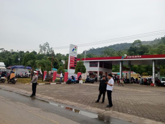 LUTIM – Personel Polres Luwu Timur bersama Polsek Malili melakukan pengawasan serta pengaturan lalu lintas dalam proses pendistribusian BBM di SPBU 74.929.46 di desa Ussu.