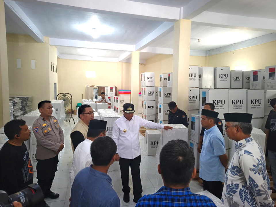 Dr. Bachtiar Baharuddin meninjau langsung kesiapan logistik, mulai dari ketersediaan kotak suara, surat suara, hingga perlengkapan lainnya yang akan digunakan pada pemungutan suara Pilkada serentak.