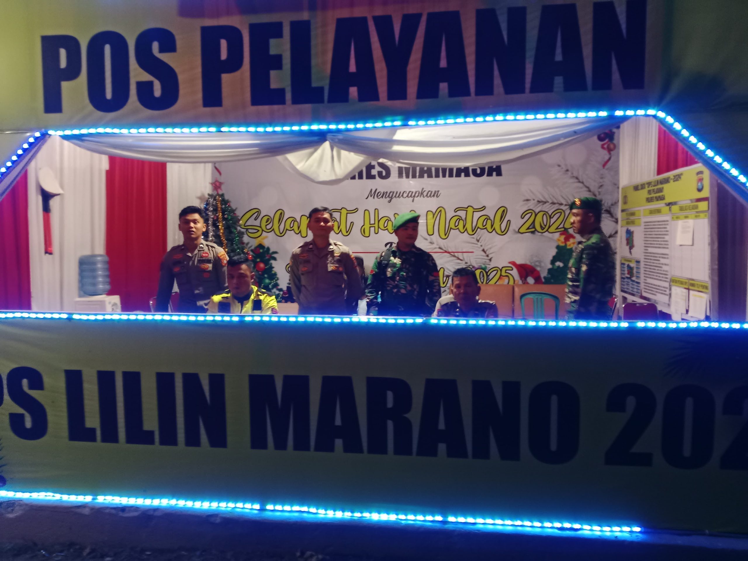 POLRES MAMASA–Personel Polres Mamasa Laksanakan Penjagaan di Pos Pelayanan Operasi Lilin Marano Kabupaten Mamasa berlangsung lancar dan terkendali. Hingga Rabu malam, pukul 20.00 WITA, situasi di pos pelayanan tersebut dilaporkan dalam keadaan aman dan kondusif, 1 January 2024
