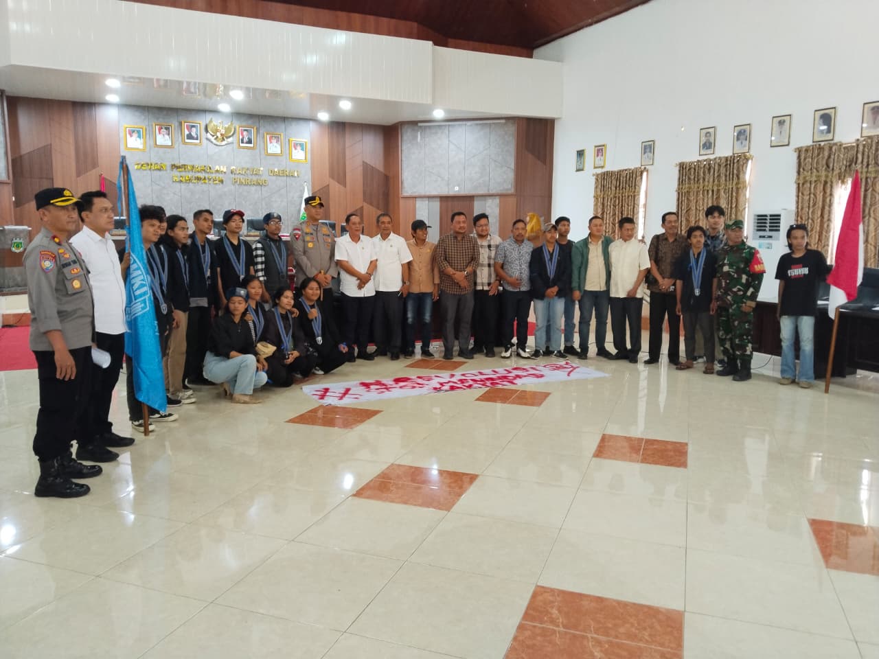 Massa aksi membawa spanduk bertuliskan “Revolusi Stop Memindas Rakyat” serta menyuarakan penolakan terhadap kebijakan DPR RI yang dinilai tidak berpihak pada masyarakat. Setelah berorasi, perwakilan mahasiswa diterima langsung Ketua DPRD Pinrang Nasrun Paturusi didampingi Kapolres Pinrang AKBP Edy Sabhara Mangga Barani, S.I.K., di ruang rapat paripurna Kantor DPRD Pinrang.
