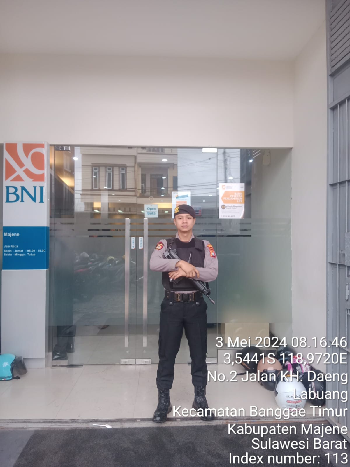 Demi terciptanya situasi yang kondusif di tiap area Bank tersebut Satuan Samapta Polres Majene menempatkan personelnya, untuk mengamankan Objek Vital disekitar Area tersebut diantaranya BANK BRI. BNI dan SULSELBAR Cabang Majene.
