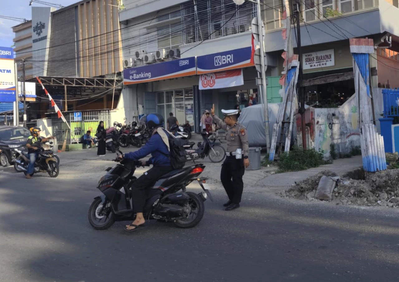 Dalam kegiatan tersebut, personel Satlantas terlihat mengatur arus lalu lintas sekaligus membantu para pejalan kaki menyeberang di titik-titik strategis. Hal ini dilakukan untuk menciptakan kelancaran arus kendaraan serta memberikan rasa aman bagi masyarakat pengguna jalan.