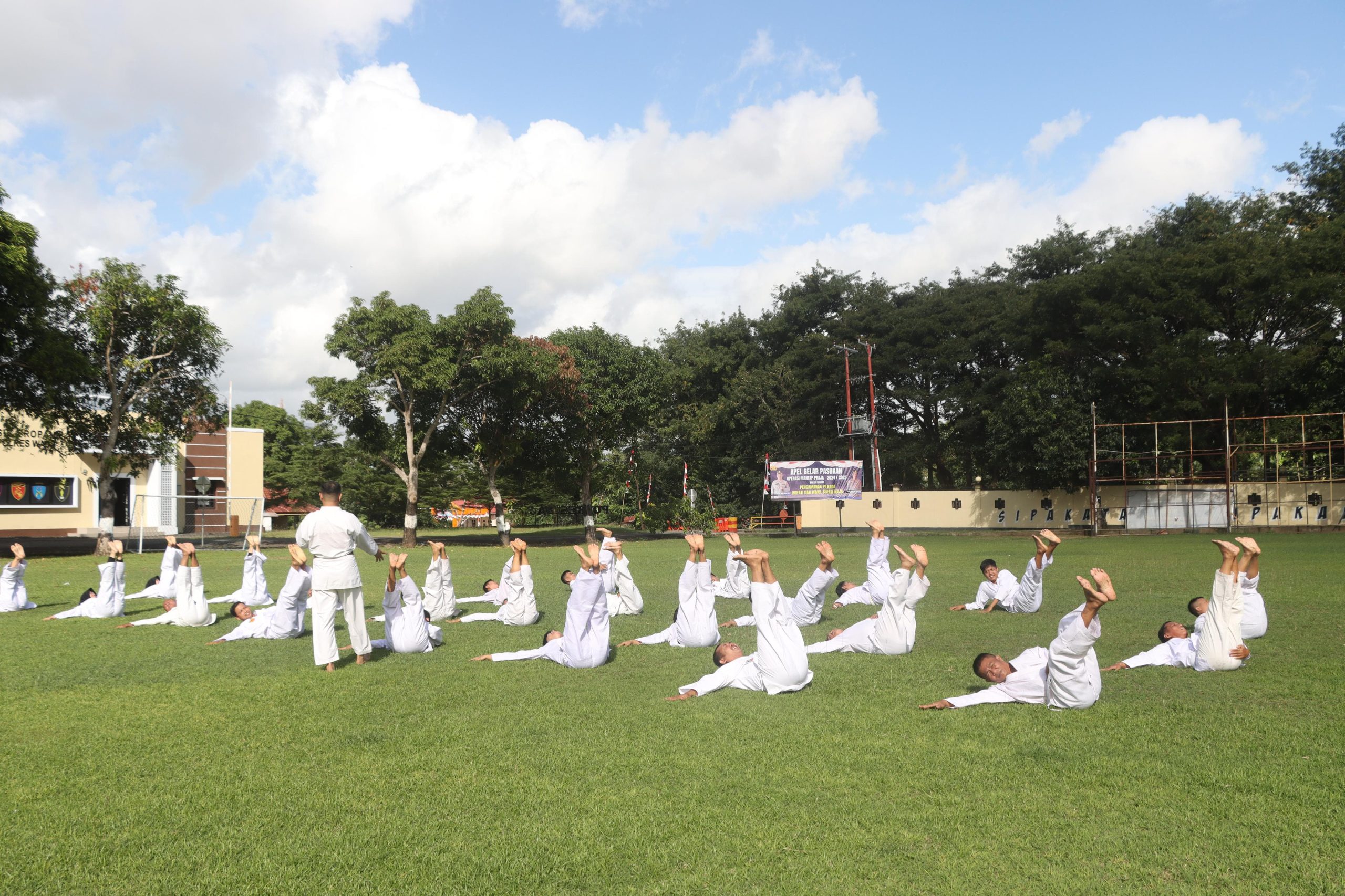 WAJO _ Personel Polres Wajo mengikuti kegiatan Tes Kesamaptaan Jasmani dan Beladiri Polri berkala di halaman Mapolres Wajo, Jum’at (9/8/2024).