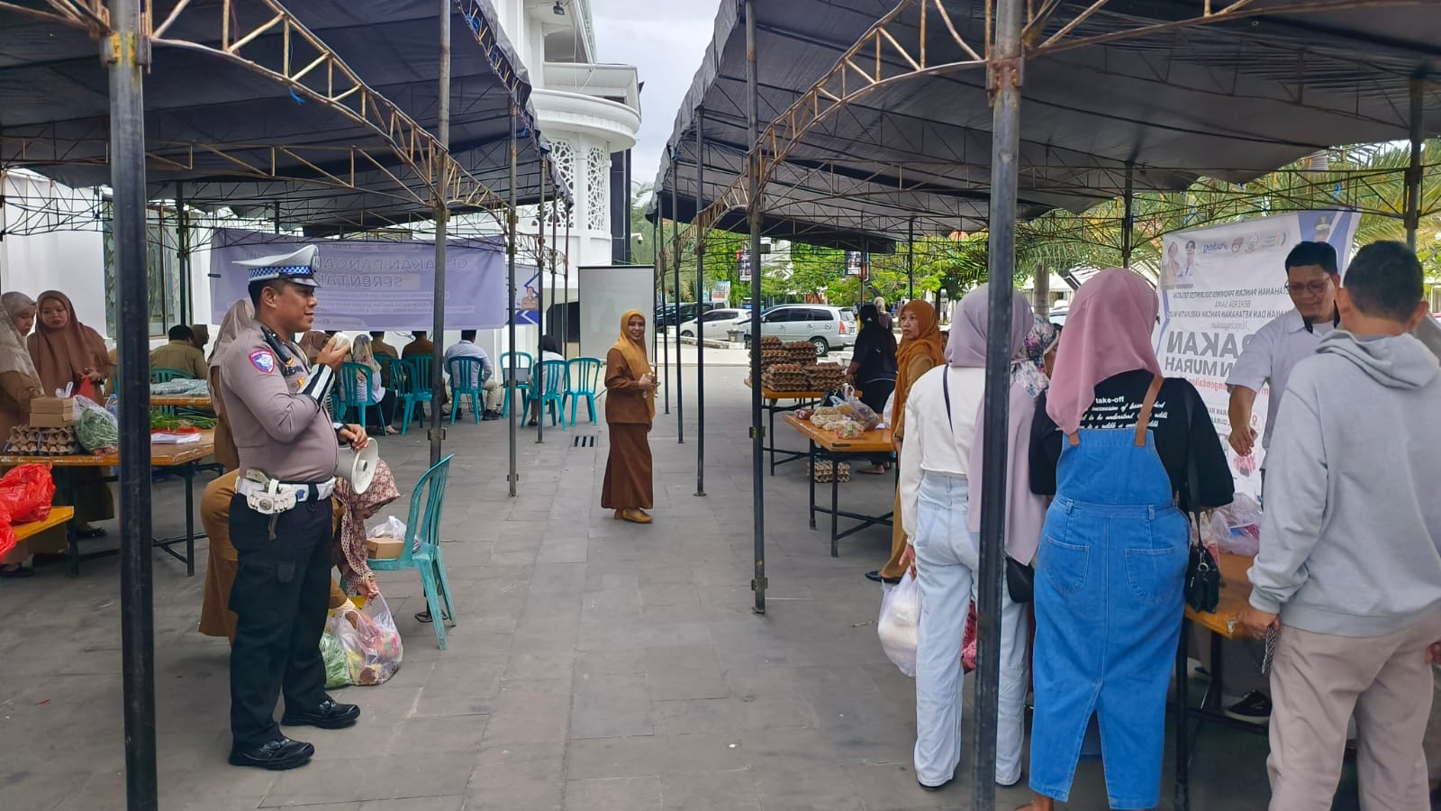 WAJO _ Sat Lantas Polres Wajo melaksanakan sosialisasi tertib berlalu lintas kepada masyarakat di area Pasar Murah pengendalian inflasi yang dilaksanakan oleh Dinas Pertanian Dan Ketahanan Pangan Wajo dipelataran Mesjid Raya Sengkang Kabupaten Wajo. Senin (9/12/2024). Kegiatan dilaksanakan dalam rangka Ops Keselamatan Lalu Lintas 2024.