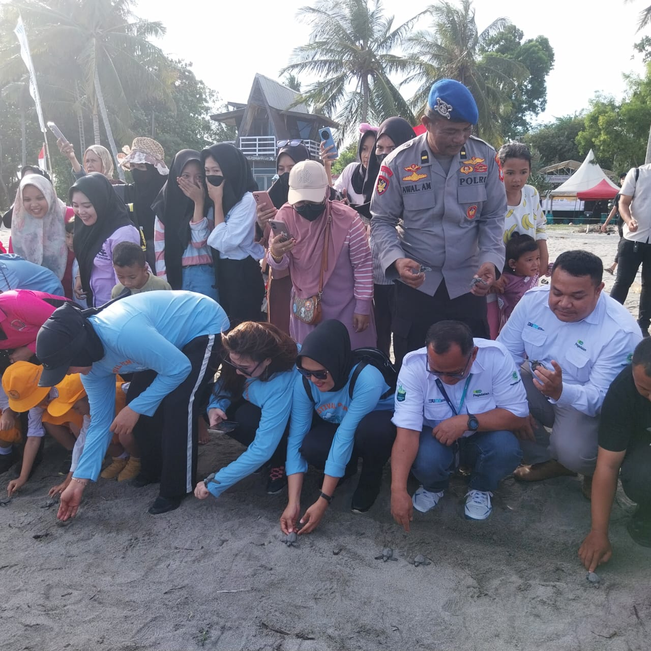 POLMAN – Personil Sat Polairud Polres Polman yang di pimpin oleh Kaurbin Ops Sat Polairud Polres Polman Ipda Awal.Am bersama personil Sat Polairud serta Personil Polsek Wonomulyo melaksanakan pengamanan festival dalam rangka memperingati hari Penyu sedunia tahun 2024 yang Dihadiri Oleh Ketua Bhayangkari Cabang Polres Polman ibu Devi Anjar didampingi Pengurus Bhayangkari Cabang di Dusun pantai Mampie Desa Galeso Kec. Wonomulyo Kab. Polman. Rabu (19/06/24)