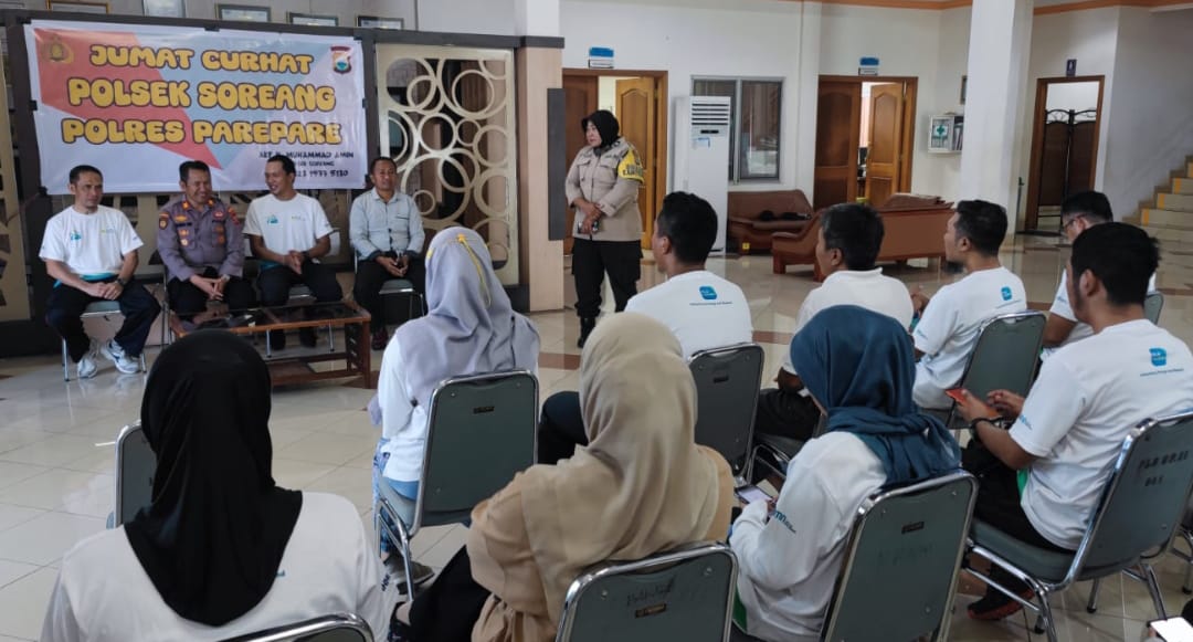 Parepare — Untuk pertama kalinya, Polsek Soreang Polres Parepare melaksanakan kegiatan Jumat Curhat dengan menyentuh sasaran Pegawai BUMN, PT. PLN NP UPDK Bakaru Parepare, yang terletak di Jl. H.A.M. Arsyad, Kel. Bukit Indah, Kec. Soreang Kota Parepare.
