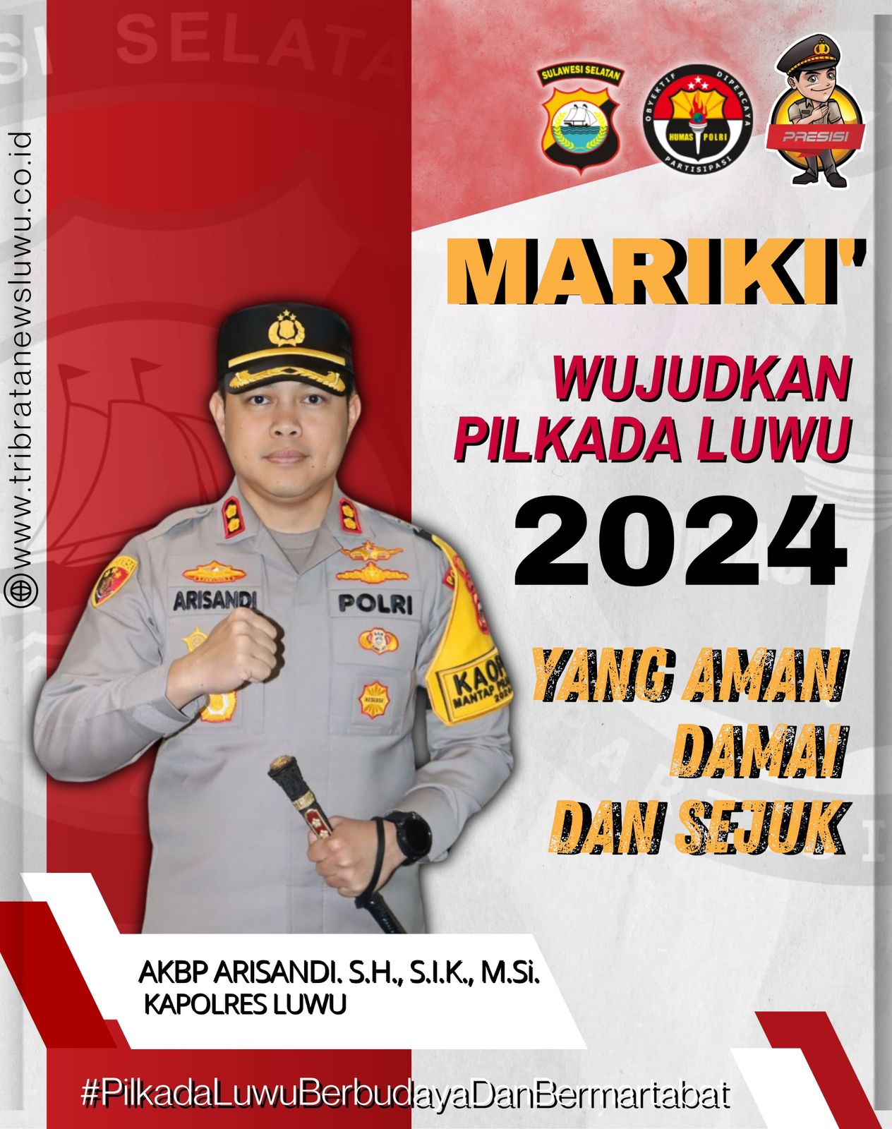 Tribratanewsluwu.co.id – Luwu. Kapolres Luwu, AKBP Arisandi mengajak seluruh masyarakat Luwu untuk bersama-sama menciptakan suasana aman dan sejuk menjelang Pemilihan Kepala Daerah (Pilkada) Bupati dan Wakil Bupati Kabupaten Luwu 2024.