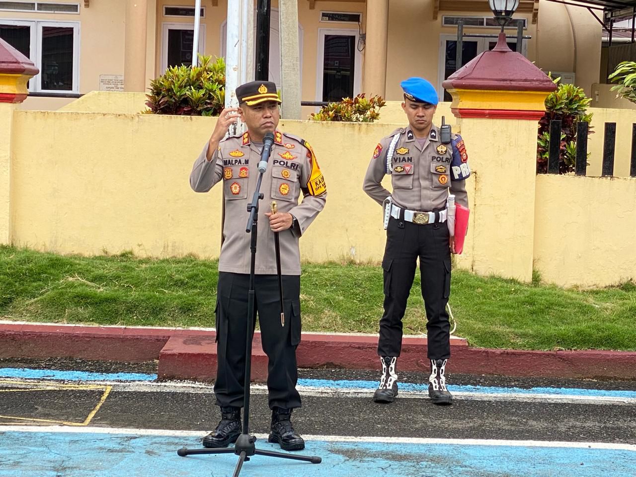 Apel pagi yang dihadiri para Pejabat Utama, Kasat, Kasi, para Kapolsek Jajaran dan seluruh peserta apel baik personil Polres hingga polsek jajaran.