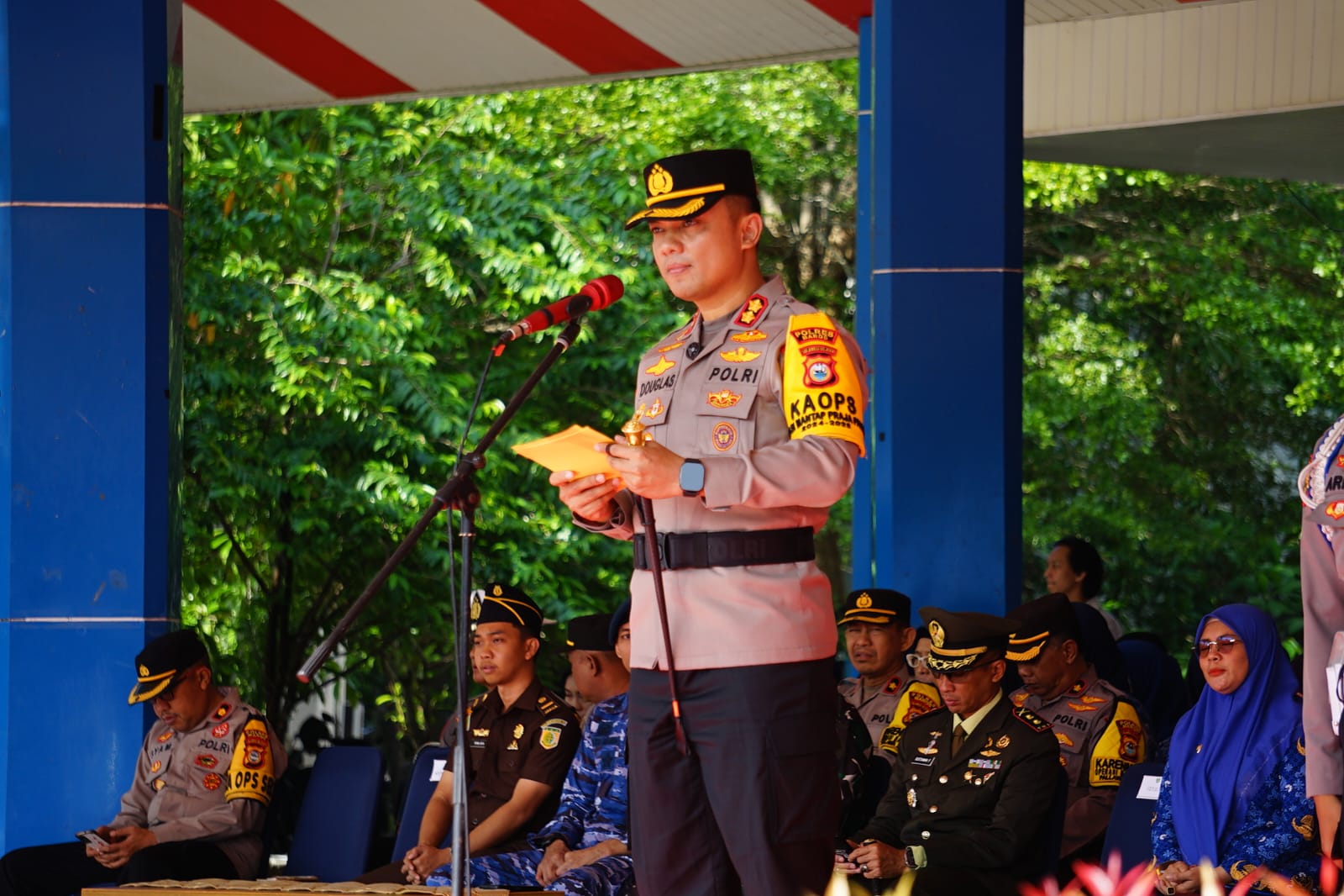 “sehigga pada kesempatan yang baik ini,saya mengajak untuk memastikan bahwa pemilukada kondusif tidak semata mata dimaknai sebagai slogan melainkan sebagai ikhtiar untuk menciptakan lancarnya rangkaian tahapan pemilukada tahun 2024” imbuhnya saat membacakan amanat upacara.